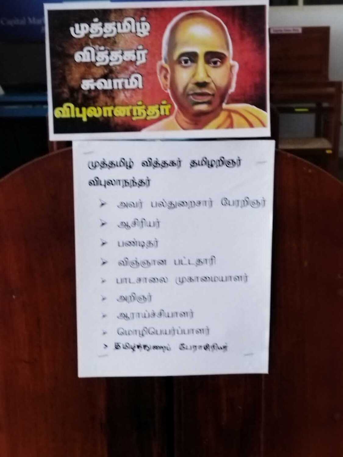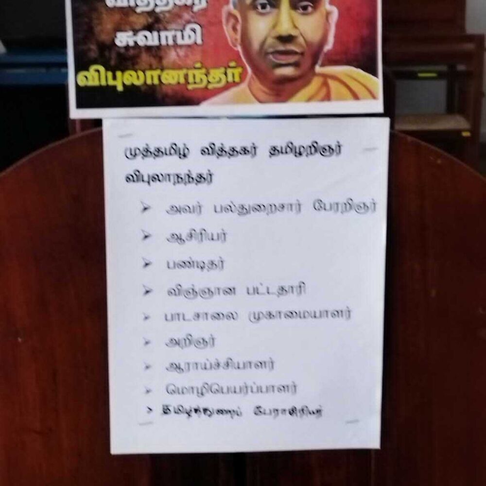 உலகின் முதல் தமிழ்ப் பேராசிரியர், முத்தமிழ் வித்தகர் சுவாமி விபுலாநந்த அடிகளாரை நினைவு கூர்ந்து இலங்கை தென்கிழக்குப் பல்கலைக்கழகம் அன்னாருக்கு கௌரவமளித்துள்ளது.