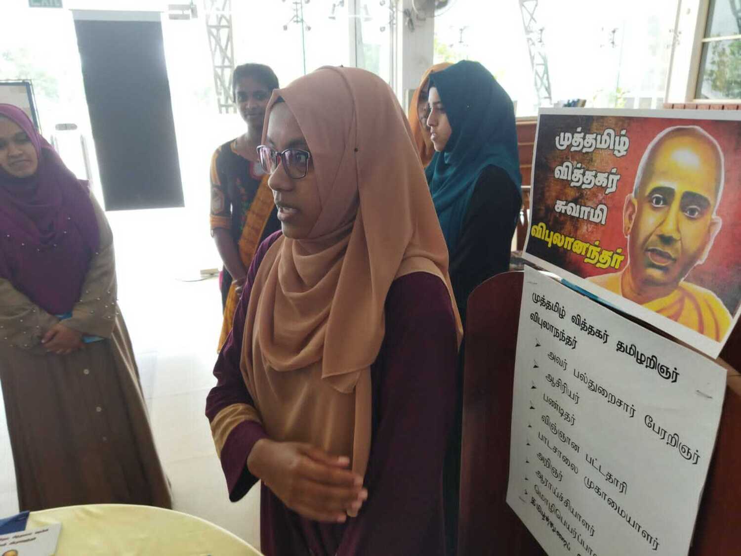 தொடர்ந்து நூலகர் றிபாயுதீன் தலைமையில் நடைபெற்ற நிகழ்வில் தமிழ் சிறப்புத்தேர்ச்சி, இறுதியாண்டு மாணவி எம்.ஏ.எப். நசீறா, அடிகளாரின் யாழ்நூல் பற்றியும், அவரது வரலாறு பற்றியும் சிறந்த ஆய்வுடன் கூடிய முக்கிய உரை ஒன்றை ஆற்றினார்.