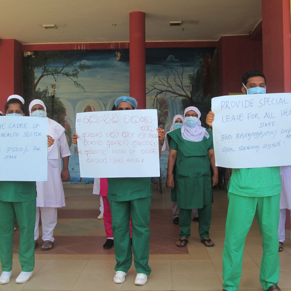 இதேவேளை குறித்த சுகாதார ஊழியர்களின் கோரிக்கைகள் குறித்து பேச்சு வார்த்தை நடத்தி தீர்வு வழங்கப்படுமென சுகாதார அமைச்சர் கெஹலிய ரம்புக்வெல தெரிவித்துள்ளார்.