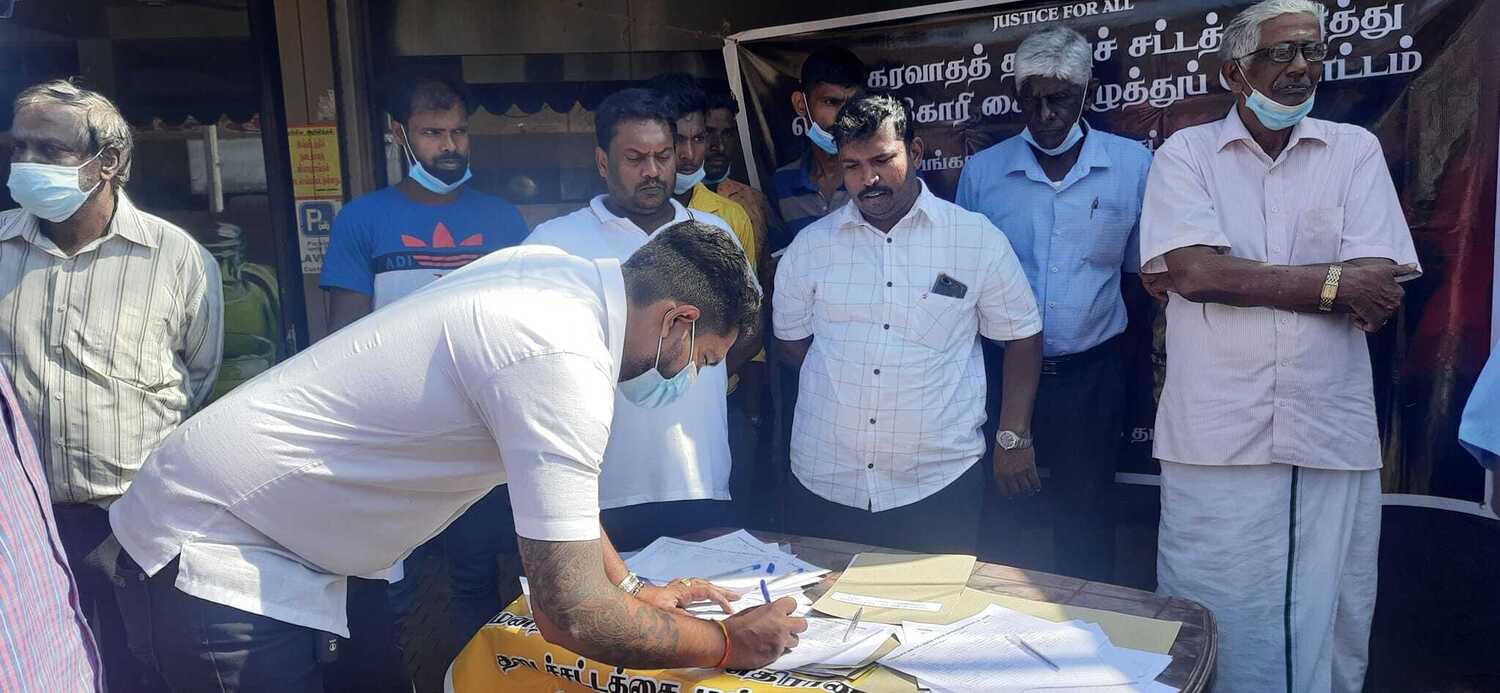 பயங்கரவாதத் தடை சட்டத்தை நீக்க வலியுறுத்தி இன்று ஞாயிற்றுக்கிழமை திருநெல்வேலியில் கையொப்பங்கள் சேகரிக்கப்பட்டன.