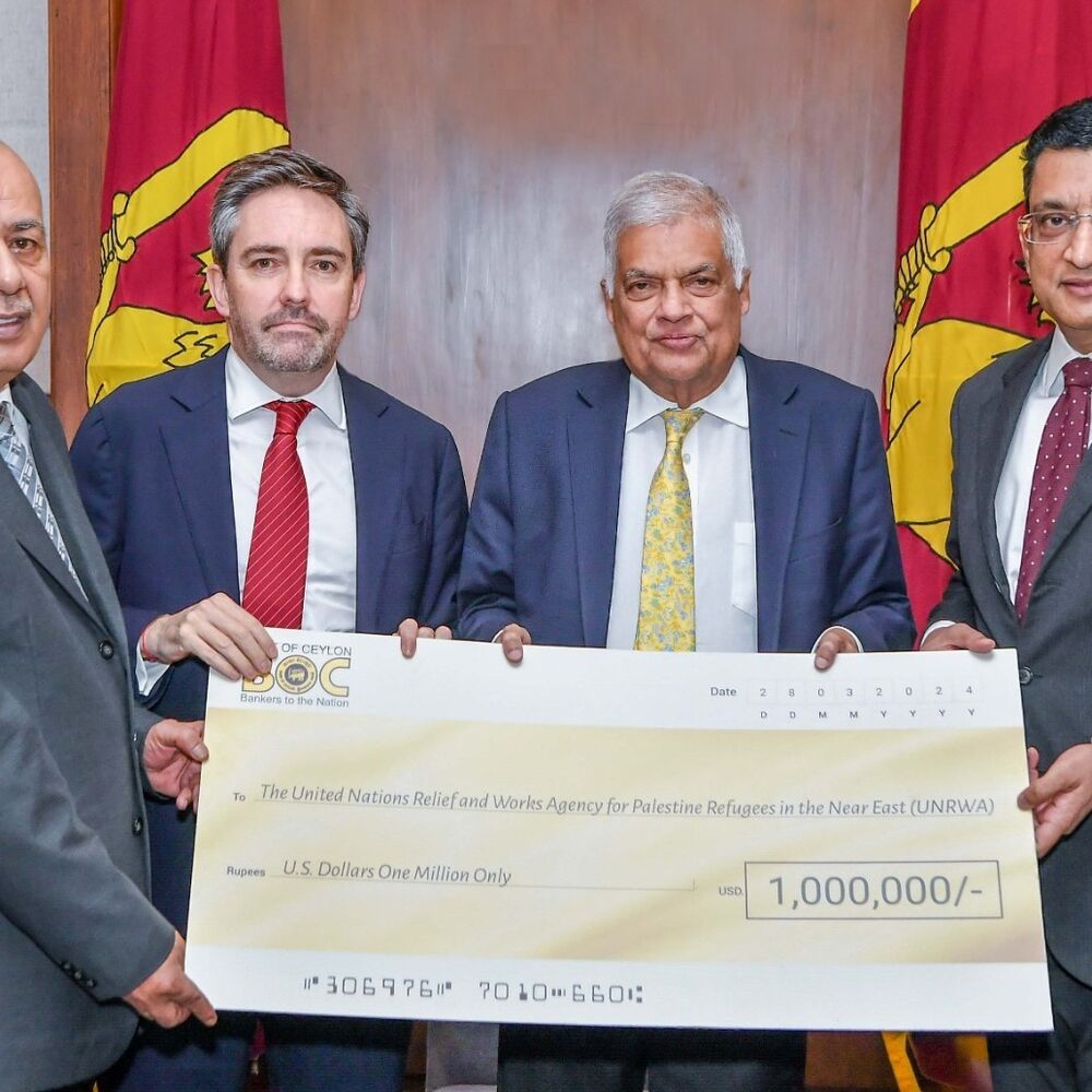 காஸா பகுதியில் இடம்பெறும் மோதல்களினால் பாதிக்கப்பட்ட சிறுவர்களுக்காக இலங்கை அரசாங்கத்தின் ஒரு மில்லியன் அமெரிக்க டொலர் நன்கொடையை ஐக்கிய நாடுகள் சபையின் உத்தியோகபூர்வ முகவர் நிறுவனத்தின் ஊடாக பாலஸ்தீன அரசாங்கத்திடம் கையளிக்கும் நிகழ்வு இன்று (01) காலை ஜனாதிபதி ரணில் விக்ரமசிங்க தலைமையில் ஜனாதிபதி அலுவலகத்தில் நடைபெற்றது.