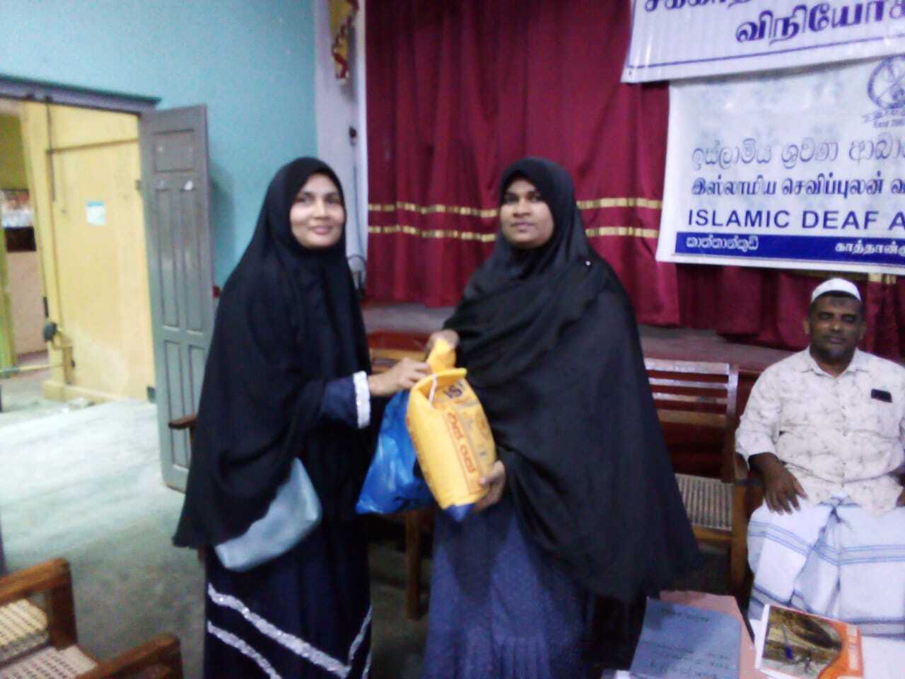 காத்தான்குடி இஸ்லாமிய செவிப்புலன் வலுவற்றோர் ஒன்றியத்தினால் நோன்பு காலத்தில் அதன் உறுப்பினர்களுக்கு சக்காத் உலருணவு பொருட்கள் வழங்கும் நிகழ்வு காத்தான்குடி மில்லத் பெண்கள் உயர்தரப் பாடசாலையில் இடம்பெற்றது.