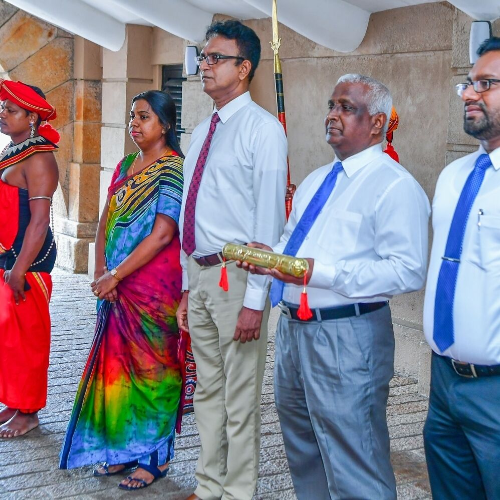 புத்தசாசன, சமய கலாசார அலுவல்கள் அமைச்சர் விதுர விக்கிரமநாயக்க சம்பிரதாய முறைப்படி ஜனாதிபதிக்கு வழங்கி வைத்தார்.
