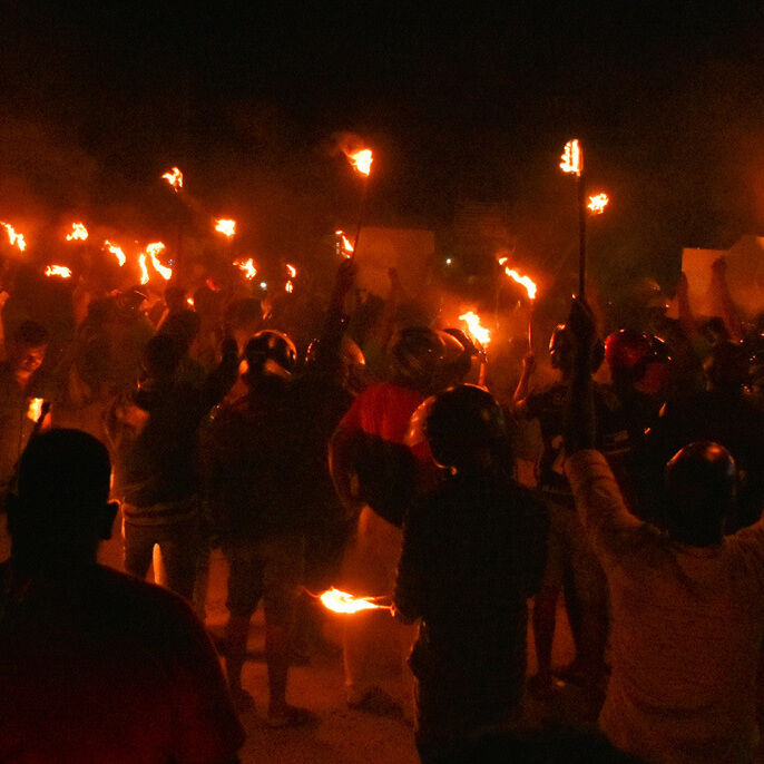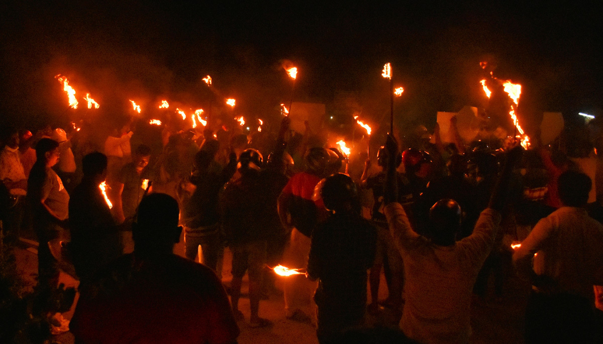 யாழ் பண்ணைக் கடற்கரையில் இரவு 7 மணியளவில் அமைதியாக ஆரம்பித்த தீப்பந்த போராட்டம் பண்ணைப் பாலத்தில் இருந்து பண்ணை சுற்றுவட்டம் வரை பேரணியாக சென்றது.