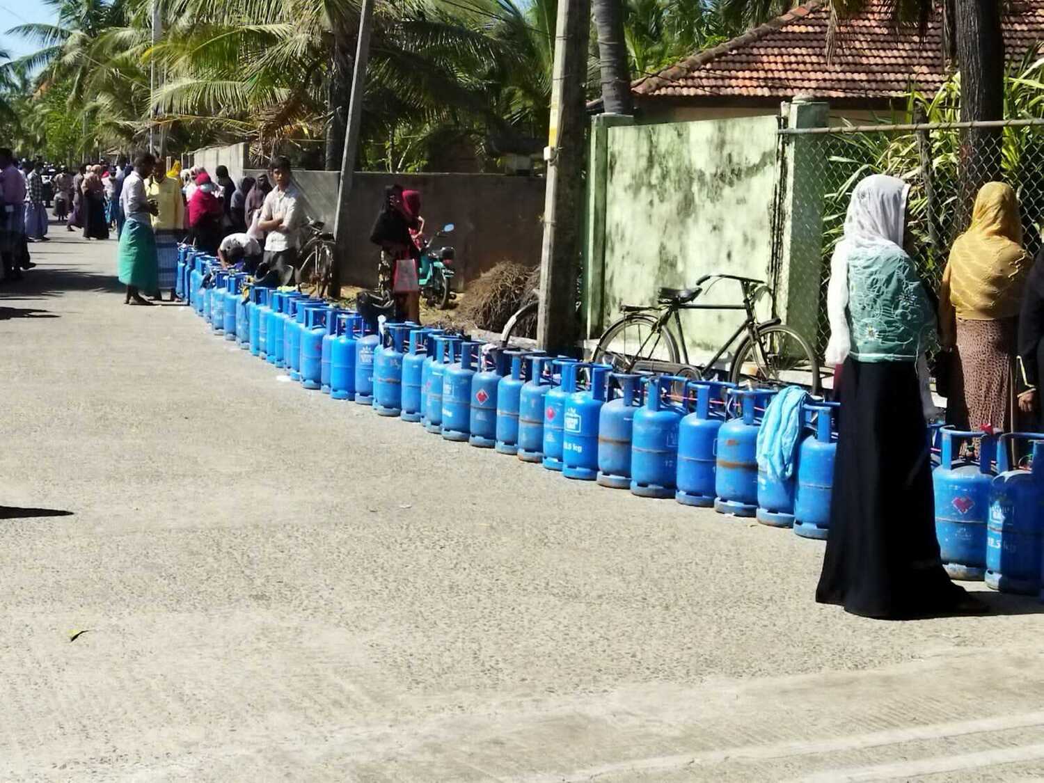 இத்தகைய ஒரு சூழ்நிலையில் சமையல் எரிவாயுவைப் பெறுவதற்காக ஆண்களும், பெண்களும் பல மணி நேரத்திற்கு முன்பே, அதுவும் இருளே பிரியாத அதிகாலை வேளையில் கியூவில் நின்று எரிவாயு பெற்ற சம்பவம் ஒன்று நிந்தவூரில் நடைபெற்றுள்ளது.
