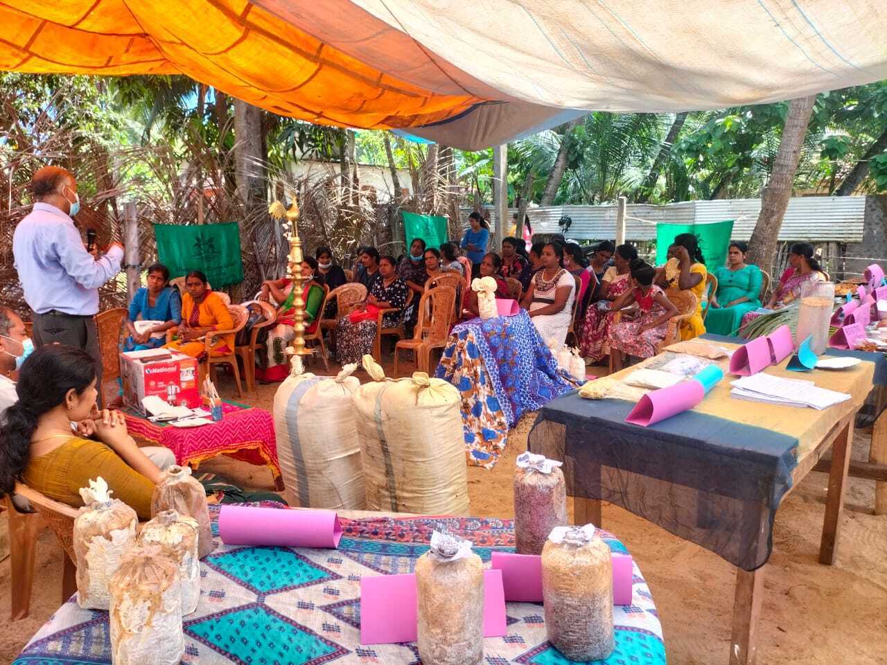 இதன்போது மாவட்ட விவாசாய உதவிப் பணிப்பாளர் வி. பேரின்பராஜா, கிழக்குப் பல்கலைக்கழக விவசாயப் பிரிவு மாணவிகளான எம். தேனுஜா மற்றும் எஸ். கீர்த்திகா ஆகியோரால் காளான் வளர்ப்பின் அறிமுகம், காளான் உற்பத்தி மற்றும் உணவு தயாரிப்பு தொடர்பான பயிற்சிகள் தெரிவு செய்யப்பட்ட பயனாளிகளுக்கு வழங்கப்பட்டது.