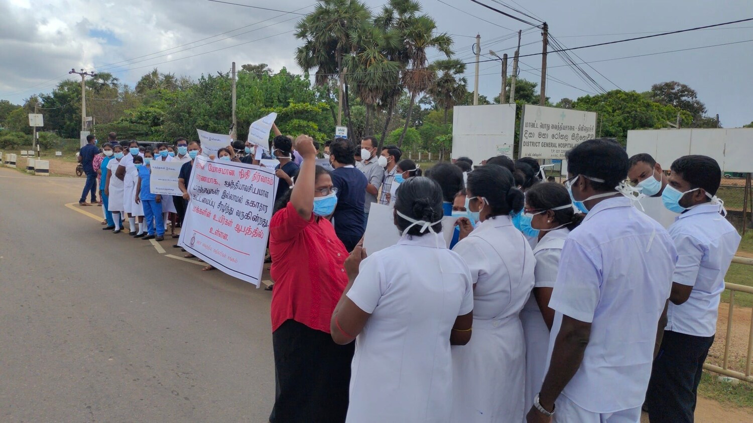 கிளிநொச்சி மாவட்ட பொது வைத்தியசாலை போராட்டத்தில் குதித்தனர்