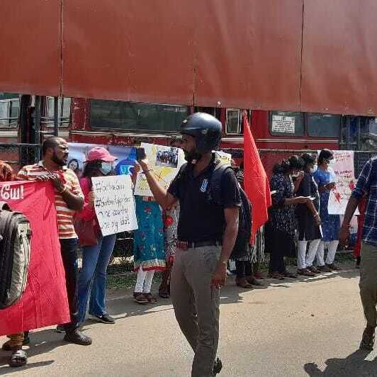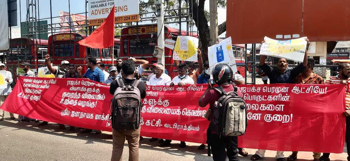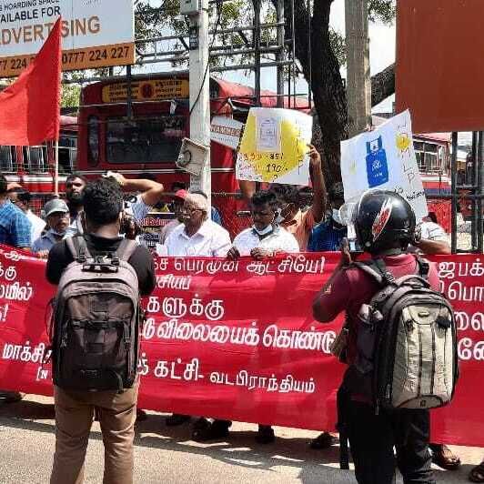 நாட்டில் பொருளாதார நெருக்கடி மற்றும் கோத்தபாய அரசுக்கு எதிராகபுதிய ஜனநாயக மாக்சிச லெனினிசக் கட்சியினரால் யாழ்ப்பாணம் மத்திய பேருந்து நிலையம் முன்றலில் கவனயீர்ப்பு போராட்டம் ஒன்று தற்பொழுது முன்னெடுக்கப்படுகிறது.