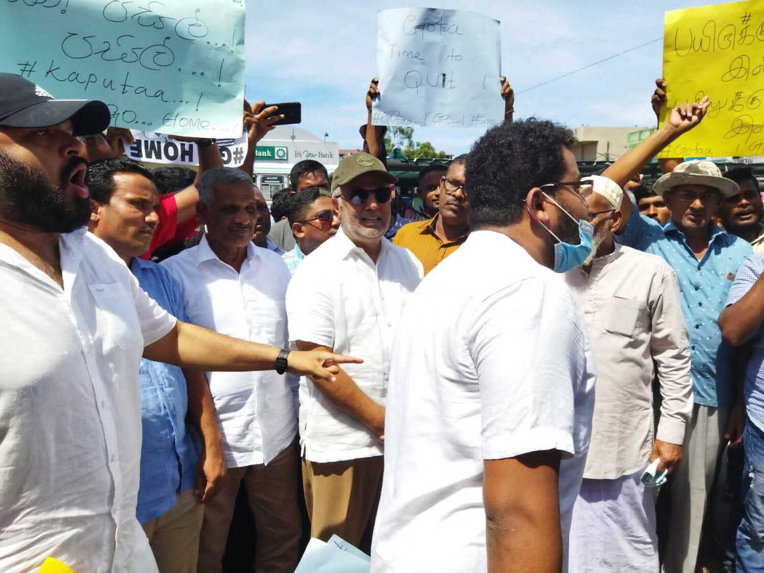இவ்வாறு ஆர்ப்பாட்டம் இடம்பெற்றுக் கொண்டிருந்த முக்கிய சமயத்தில் முஸ்லிம் காங்கிரஸின் தலைவரும் நாடாளுமன்ற உறுப்பினருமான ரவூக் ஹக்கீமை நோக்கி திடீரென ஆர்ப்பாட்டத்தில் புகுந்த சிலர் கேள்விக் கணைகளை தொடுக்கத் தொடங்கினர்.