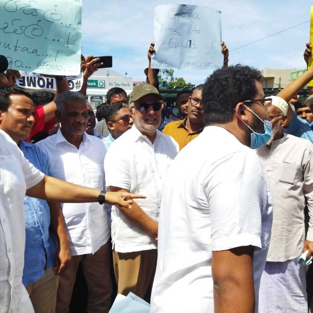 இந்த ஆர்ப்பாட்டத்தில் நாடாளுமன்ற உறுப்பினர் எம்.ஏ.சுமந்திரன் உரையாற்றுகையில் இங்கு தமிழ் முஸ்லிம் மக்கள் ஒன்றினைந்திருப்பது இந்த ராஜபக்ஷ குடும்ப ஆட்சியை ஒழித்துக்கட்டுவதும் அவர்களை வீட்டுக்கு அனுப்புவதற்கான நோக்கம் கொண்டதுமாகும் அதை மட்டுமே முக்கிய இலக்குடன் எமது போராட்டத்தினை தொடர்வோம் வேறு பிரச்சினைகள் இருப்பின் நாம் பேசித்தீர்த்துக்கொள்ளலாம் என்றார்.