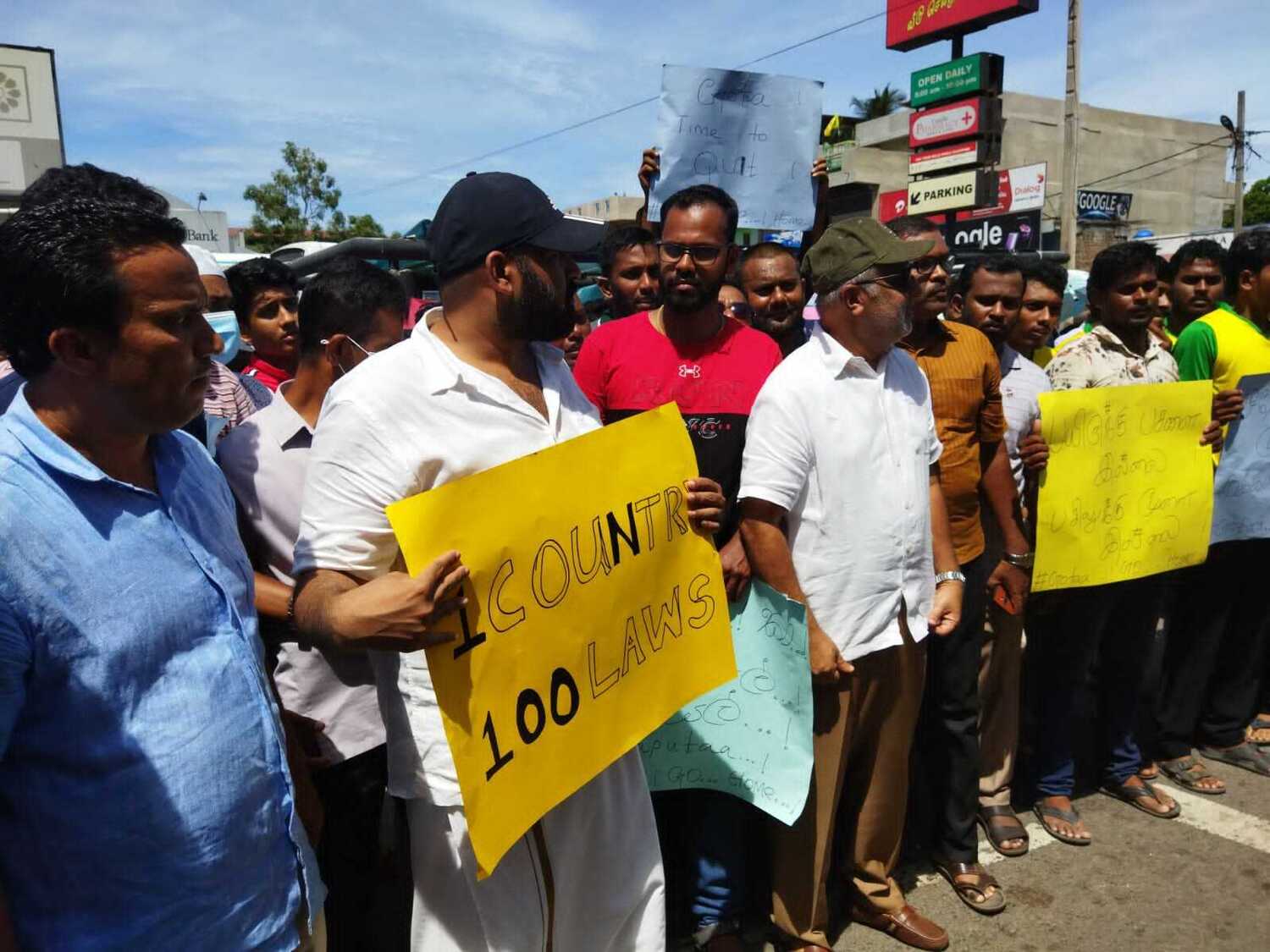 போன்ற கோஷங்களை ஆர்ப்பாட்டத்தில் கலந்து கொண்டோர் எழுப்பியதுடன் அரசை கண்டிக்கும் பல்வேறு சுலோக அட்டைகளையும் ஏந்தியிருந்தனர்.