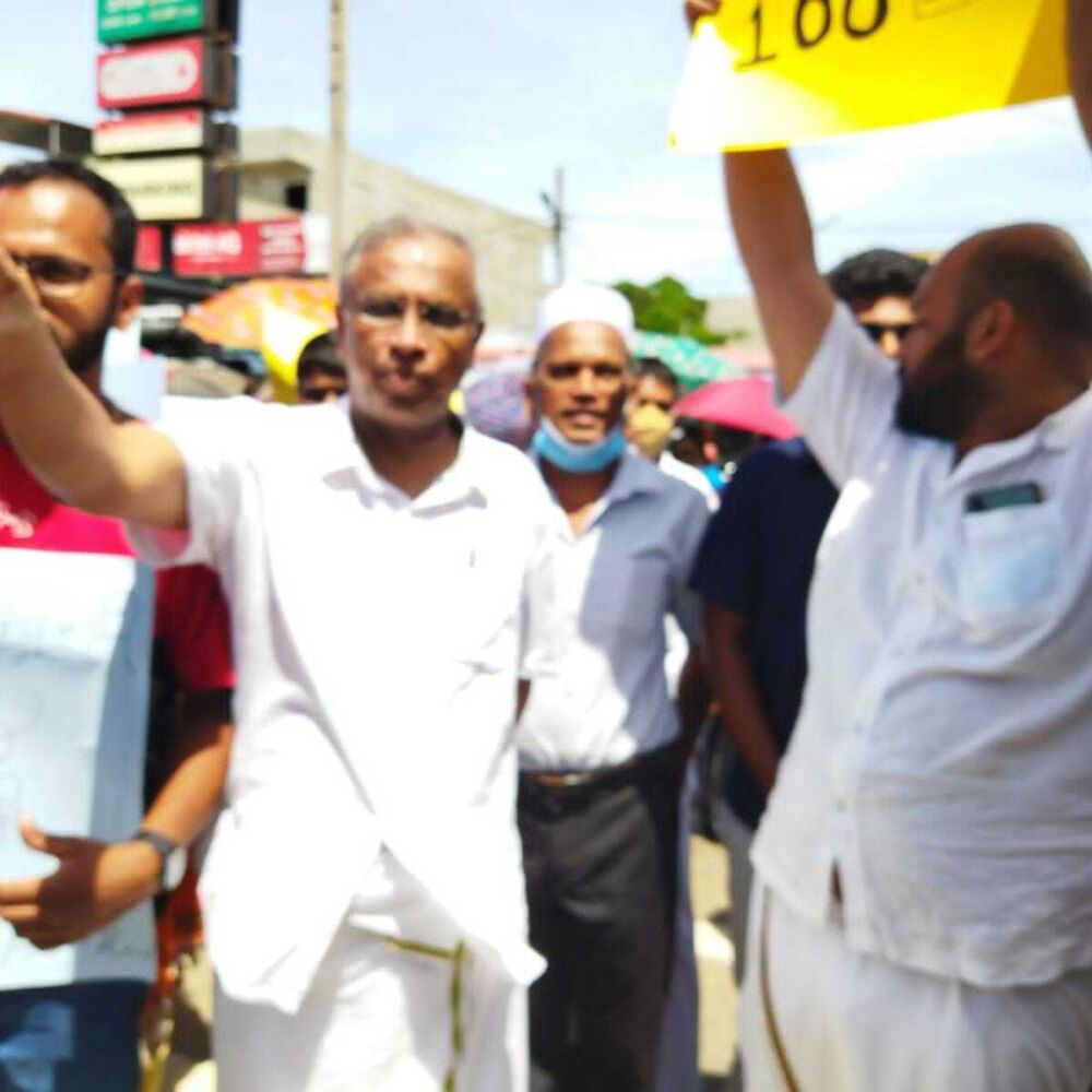 கல்முனை சமாதான சதுக்கத்திலிருந்து ஆரம்பமான இந்த ஆர்ப்பாட்டப் பேரணியில் தமிழ்த்தேசியக் கூட்டமைப்பின் ஊடகப் பேச்சாளருமான எம்.ஏ.சுமந்திரன், நாடாளுமன்ற உறுப்பினர் இரா.சாணக்கியன் ஆகியோர் கலந்து கொண்டதுடன் சிறீலங்கா முஸ்லிம் காங்கிரஸின் தலைவரும் நாடாளுமன்ற உறுப்பினருமான ரவூப் ஹக்கீமும் கலந்து கொண்டார்.