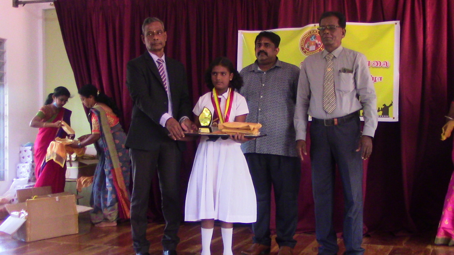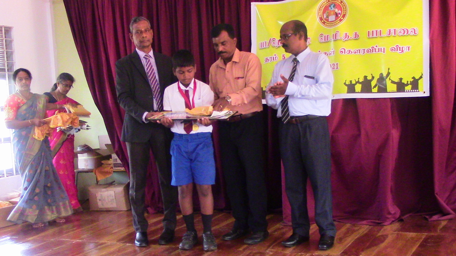 இந்நிகழ்வில் வாழ்த்துரைகளையும், பரிசில்கள் மற்றும் கேடயம் பதக்கம் என்பவற்றை நிகழ்வின் பிரதம விருந்தினரும் யாழ் பல்கலைக்கழக துணை வேந்தருமாகிய பேராசிரியர் சி ஸ்ரீ சற்குணராஜா வடமராட்சி வலய திட்டமிடல் பிரதி கல்வி பணிப்பாளர் செல்வி ஜனனி, சட்டத்தரணியும் பாடசாலையின் பழைய மாணவனுமாகிய நடா ரஜீவன், கரவெட்டி கோட்டக்கல்வி அதிகாரி வெஎ. புவனேந்திரராசா, நெல்லியடி மத்திய கல்லூரி ஓய்வு பெற்ற அதிபர் கலாநிதி செ. சேதுராசா, முன்னாள் நெல்லியடி மெதடிஸ்த மிசன் தமிழ் கலவன் பாடசாலை அதிபர் ந.தேவராசா, சின்னதா வள்ளியம்மை அறக்கட்டளை இயக்குனர் சி. கிருஷ்ணமூர்த்தி, நெல்லியடி போலீஸ் நிலைய பொறுப்பு அதிகாரி உடபட பலரும் வழங்கிவைத்தனர்.