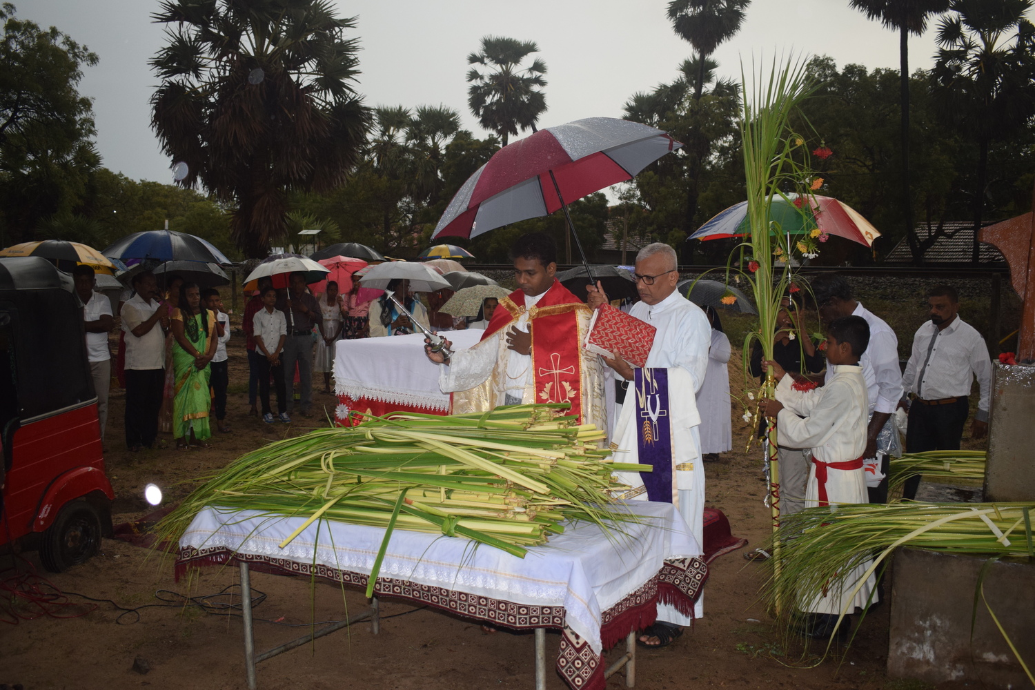 இவ் பவனியின்போது பேசாலை உதவி பங்கு தந்தை அருட்பணி எஸ். டிக்சன் அடிகளார் சிவப்பு நிறத் திருபோர்வை அணிந்து செல்ல, பக்தர்கள் கையிலே குருத்தோலைகளை ஏந்தியவர்களாக “தாவீது மகனுக்கு ஓசன்னா” என முழங்கி வந்து திருப்பலி திருப்பலி நிறைவேற்றலுக்கு ஆலயத்துள் நுழைந்தார்கள்.