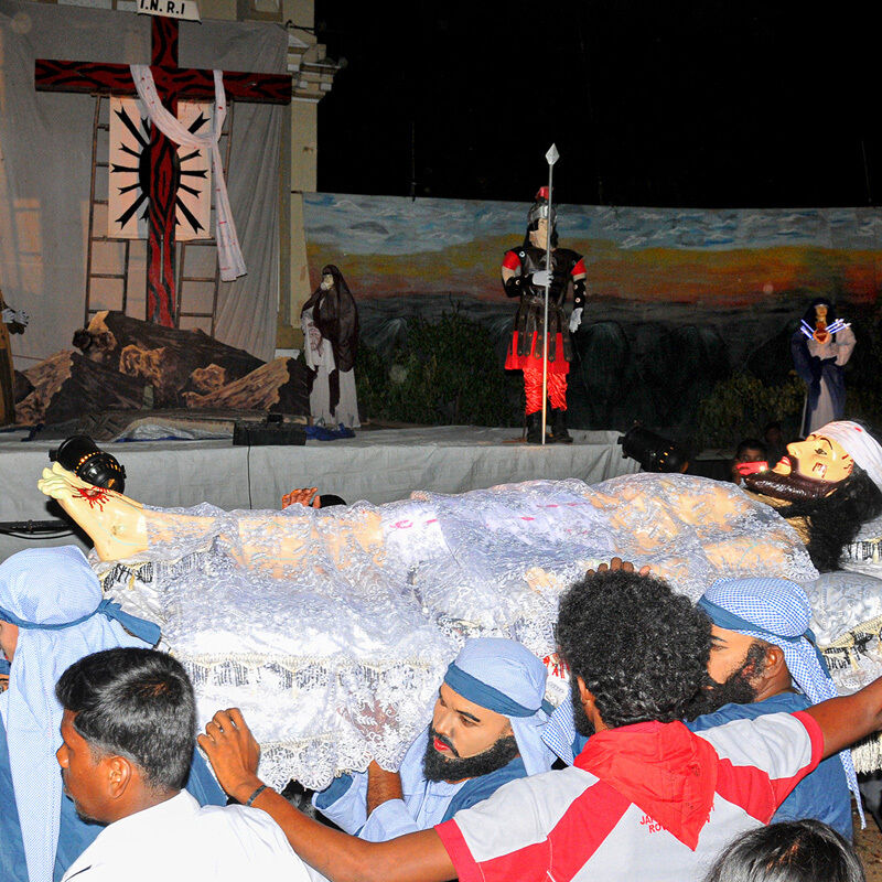இவ்வாராதனையில் ஆண்டவரை சிலுவையில் அறைந்து இறைமகன் இயேசு சிலுவையில் மரிக்கும் காட்சியைத் தொடர்ந்து அவரின் உடலை சிலுவையில் இருந்து இறக்கி மக்கள் அஞ்சலிக்காக ஆலயத்துக்குள் எடுத்துச்செல்லும் காட்சியும் இடம்பெற்றது.