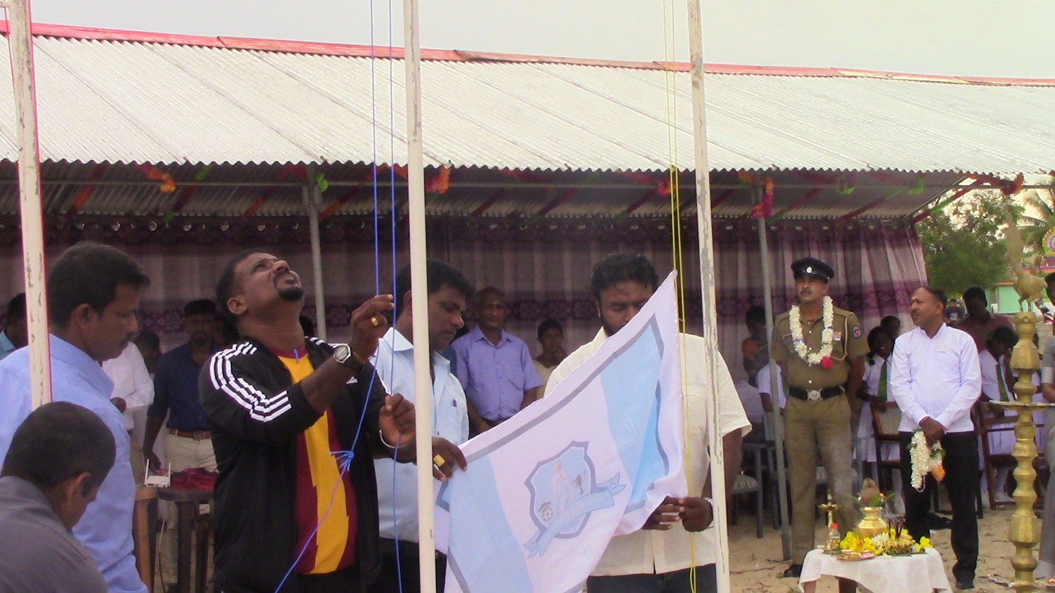 தொடர்ந்து மங்கல விளக்குகளை நிகழ்வின் பிரதம விருந்தினராக கலந்து கொண்ட முன்னாள் வடமராட்சி கிழக்கு பிரதேச செயலாளரும், முல்லை மாவட்ட மேலதிக அரசாங்க அதிபருமான க. கனகேஸ்வரன், வடமராட்சி கிழக்கு பிரதேச செயலக தலைமை கிராம சேவையாளர் வ. தவராசா, இலங்கை உதைபந்தாட்ட சம்மேளனத்தின் பிரதிப் பொதுச் செயலாளர் தி. வரதராசன், சட்டத்தரணி செல்வி இ. நிசாந்தினி, உடுத்துறை கிராம அபிவிருத்தி உத்தியோகத்தர் வி. சுபேஸ்குமார், வடமராட்சி கிழக்கு விளையாட்டு உத்தியோகத்தர் சி. ஜிவிந்தன், பருத்தித்துறை உதைபந்தாட்ட சம்மேளனத்தின் தலைவர் மா. நவநீதமணி, பருத்தித்துறை உதைபந்தாட்ட சம்மேளனத்தின் செயலாளர் அ. அருளானந்தசோதி, வடமராட்சிக்கிழக்கு உதைபந்தாட்ட சம்மேளனத்தின் தலைவர் வேலுப்பிள்ளை பிரசாந்தன், மருதங்கேணி போலீஸ் நிலைய பொறுப்பதிகாரி தலமை பொலீஸ் பொறுப்பதிகாரி திரு அமரசிங்க, உட்பட பலரும் ஏற்றிவைத்ததை தொடர்ந்து தேசியக்கொடியைப் நிகழ் நிகழ்வின் பிரதம விருந்தினரான க. கனகேஸ்வரன் ஏற்றினார். தொடர்ந்து, வடமராட்சி உதைபந்தாட்ட சம்மேளனம் கொடி, வடமராட்சி கிழக்கு உதைபந்தாட்ட சம்மேளன கொடி, உடுத்துறை செந்தமிழ் விளையாட்டுக்கழகம் கொடி, நிகழ்வின் இறுதி போட்டிக்கு தெரிவு செய்யப்பட்ட வடமராட்சி அல்வாய் மனோகரா விளையாட்டு கழகம், இளவாலை சென் லூட்ஸ் விளையாட்டு கழகம் ஆகியவற்றின் கொடிகள் ஏற்றப்பட்டன.