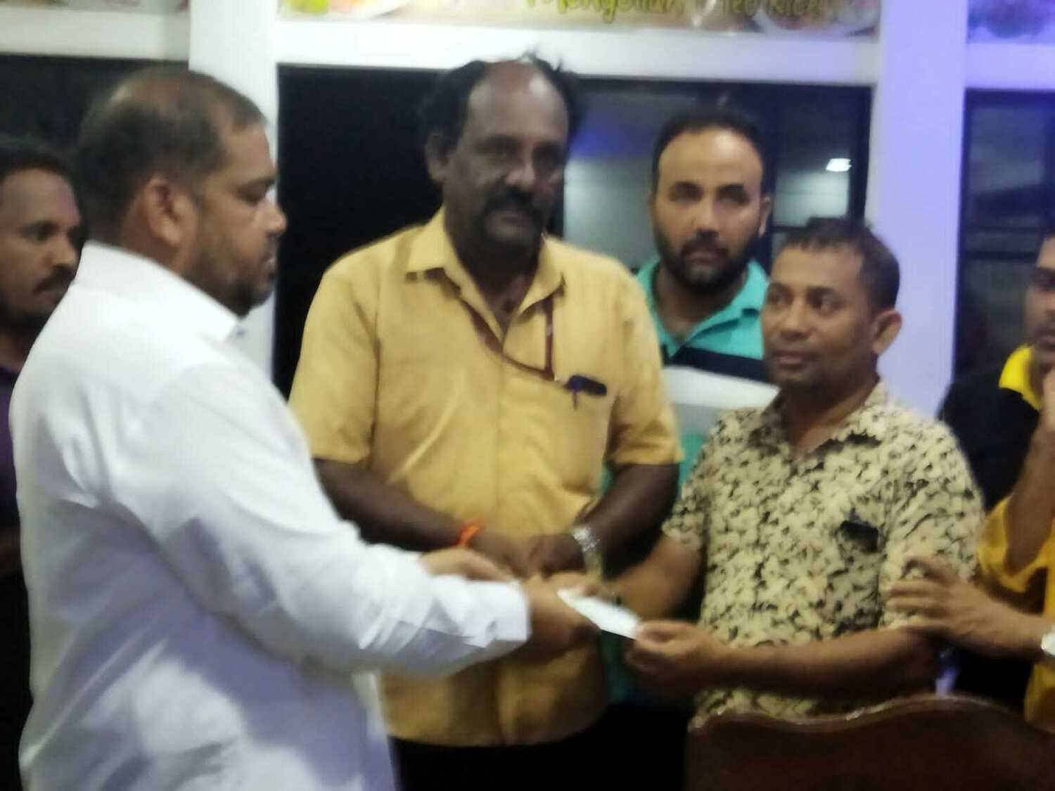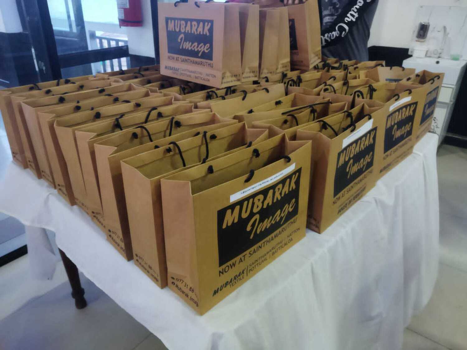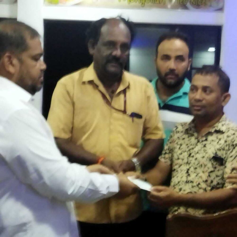 மறைந்த ஒலிபரப்பாளர் மர்ஹ{ம் ஏ.ஆர்.எம். ஜிப்ரி மற்றும் பிறை எப்.எம் பணிப்பாளர் பஷீர் அப்துல் கையூம் ஆகியோருக்கு நோன்ப பெருநாளுக்காக இரு காசோலைகளை வழங்கியதுடன், நிகழ்வில் கலந்து கொண்ட சகல தமிழ், முஸ்லிம் ஊடகலியலாளர்களுக்கும் தமது முபாறக் இமேஜ் (ஆண்களுக்கான ஆடையகம்) சார்பில் புத்தாடைகள் கொண்ட பெருநாள் பொதிகளையும் வழங்கினார்.