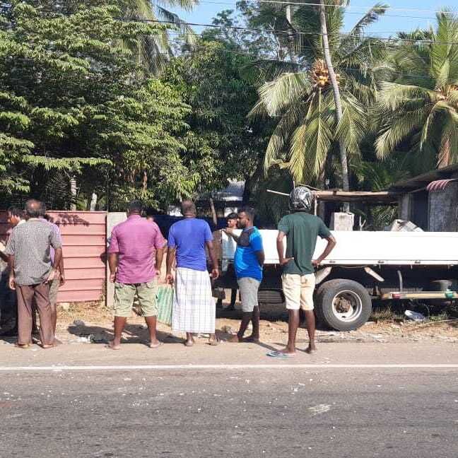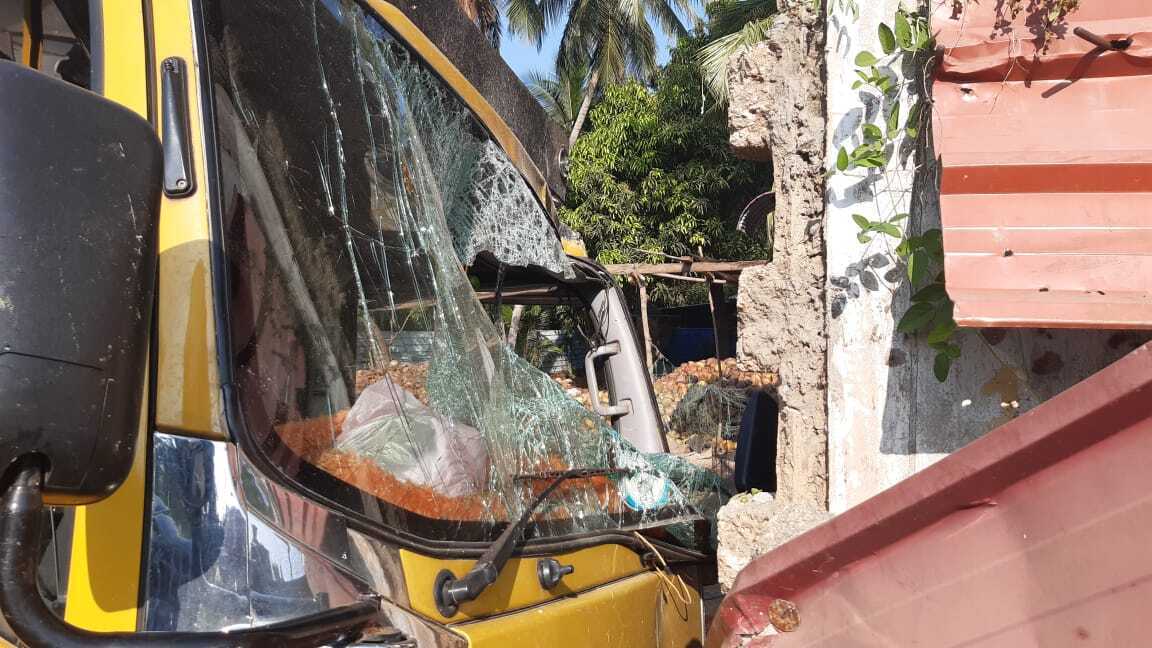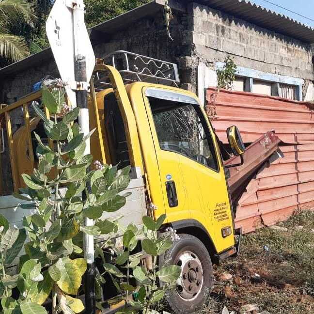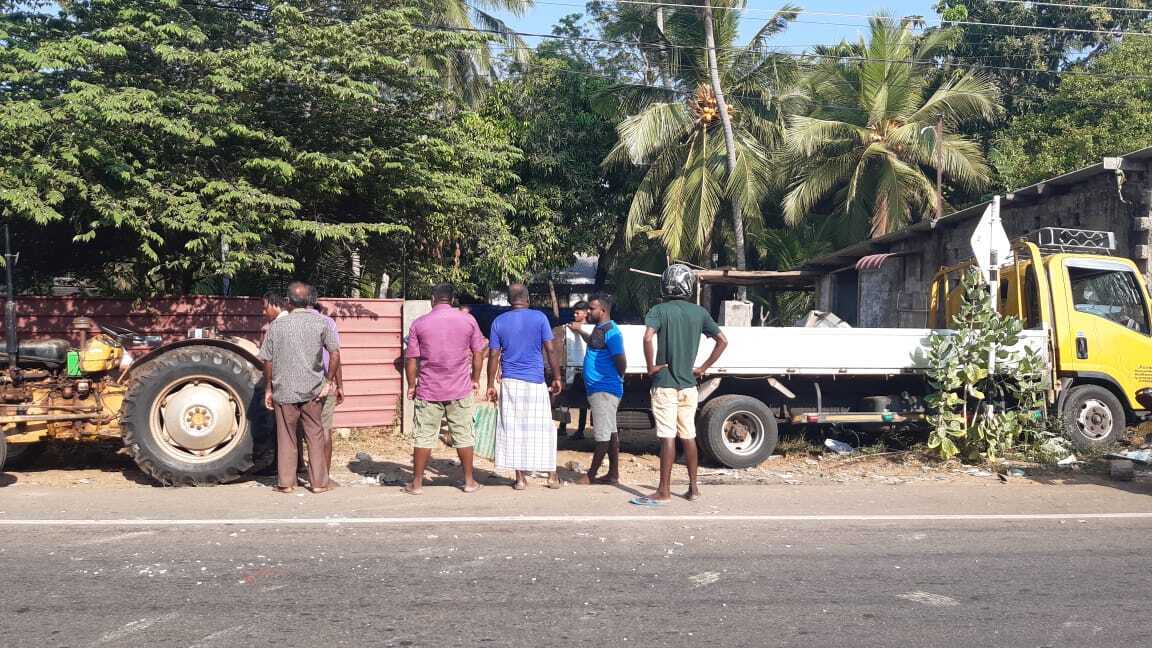 யாழ்ப்பாணத்திலிருந்து பருத்தித்துறை நோக்கி அதிகாலை இறைச்சிக் கோழிகளை ஏற்றியவாறு பயணித்த வாகனத்தின் முன்பக்க டயர் திடீரென காற்று போனதால் வாகனம் கட்டுப்பாட்டை இழந்து அருகே உள்ள டயர் கடை மற்றும் தேங்காய் விற்பனை செய்யும் கடை ஆகியவற்றின் தொட்டிகள் மதிச்சுவர்கள் என்பவற்றை மோதித் தள்ளியதுடன், கண்டர் வாகனமும் முற்றாக செய்தமடைந்தது. இதன் போது குறித்த வாகனத்தில் பயணம் செய்த சாரதியின் உதவியாளர்கள் இருவர் கைகள் மற்றும் தலைகளில் காயங்களுக்குள்ளாகி அச்சுவேலி பிரதேச வைத்தியசாலையில் அனுமதிக்கப்பட்டுள்ளனர்.