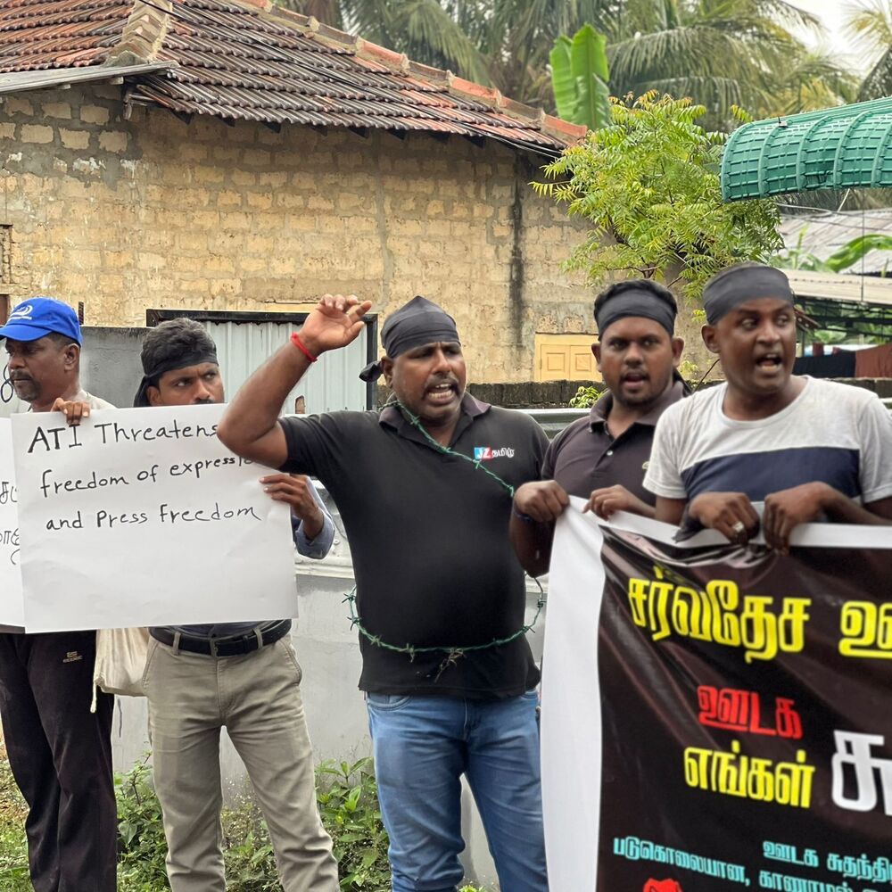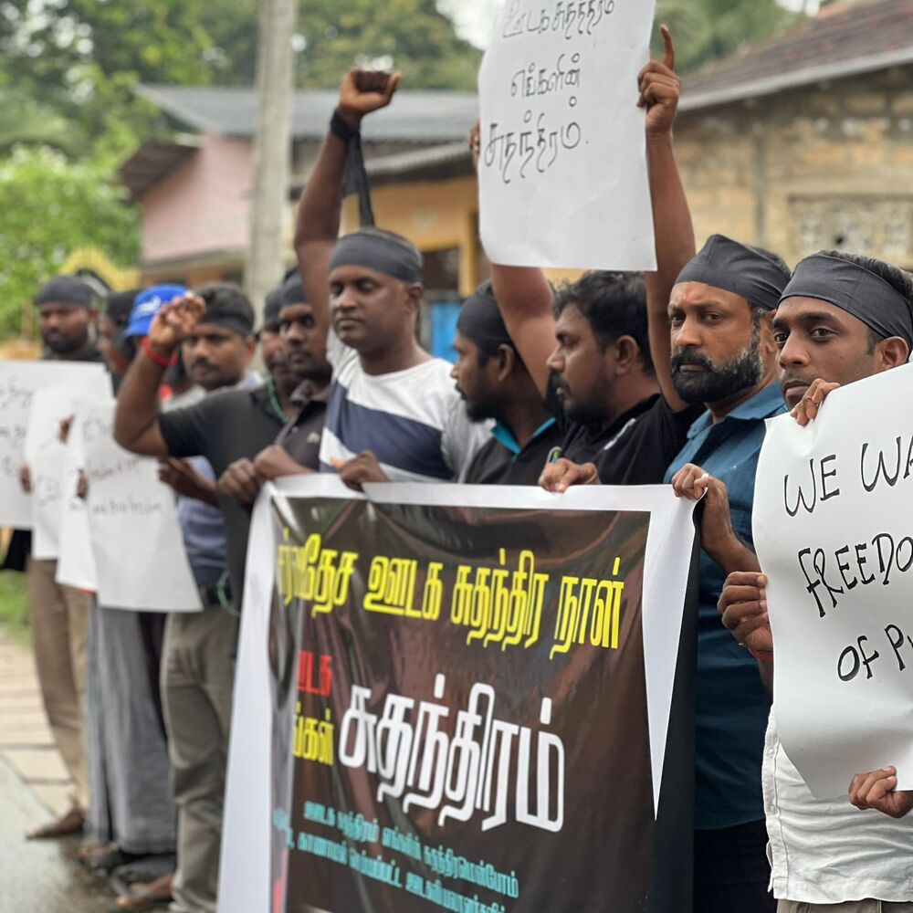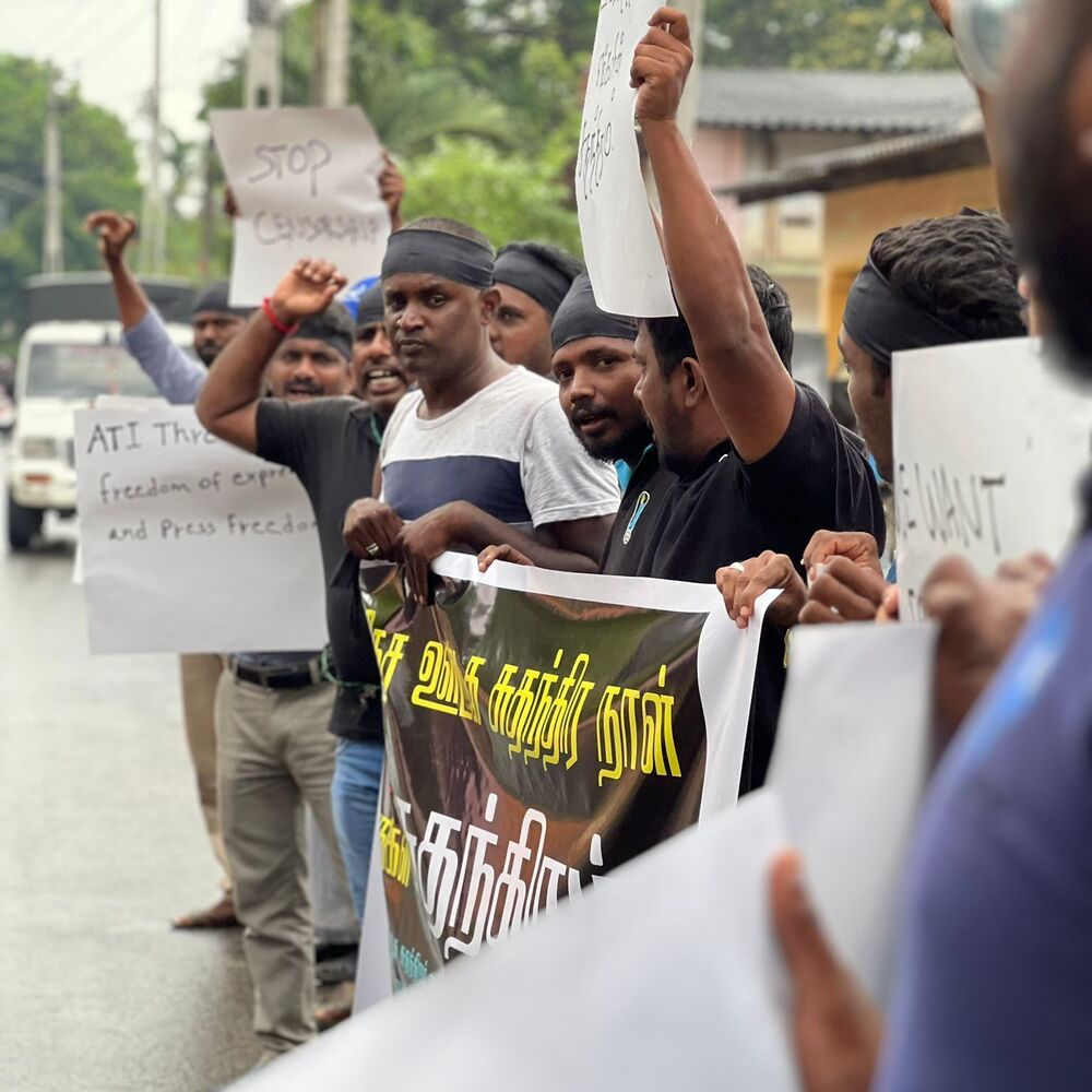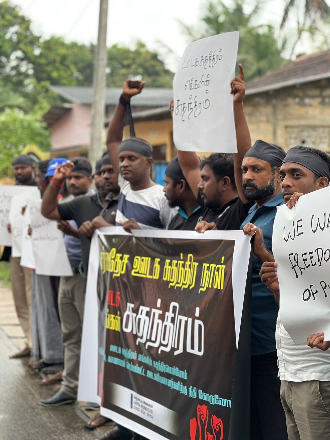 அதன் போது, ஊடக சுதந்திரத்தை வலியுறுத்தியும், படுகொலை செய்யப்பட்ட ஊடகவியலாளர்களுக்கு நீதி கோரியும், கொண்டுவரப்படவுள்ள பயங்கரவாத எதிர்ப்பு சட்டத்திற்கு எதிர்ப்பு தெரிவித்தும் ஊடகவியலாளர்களால் கோஷங்கள் எழுப்பட்டன.
