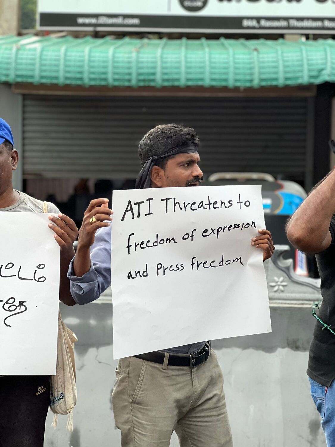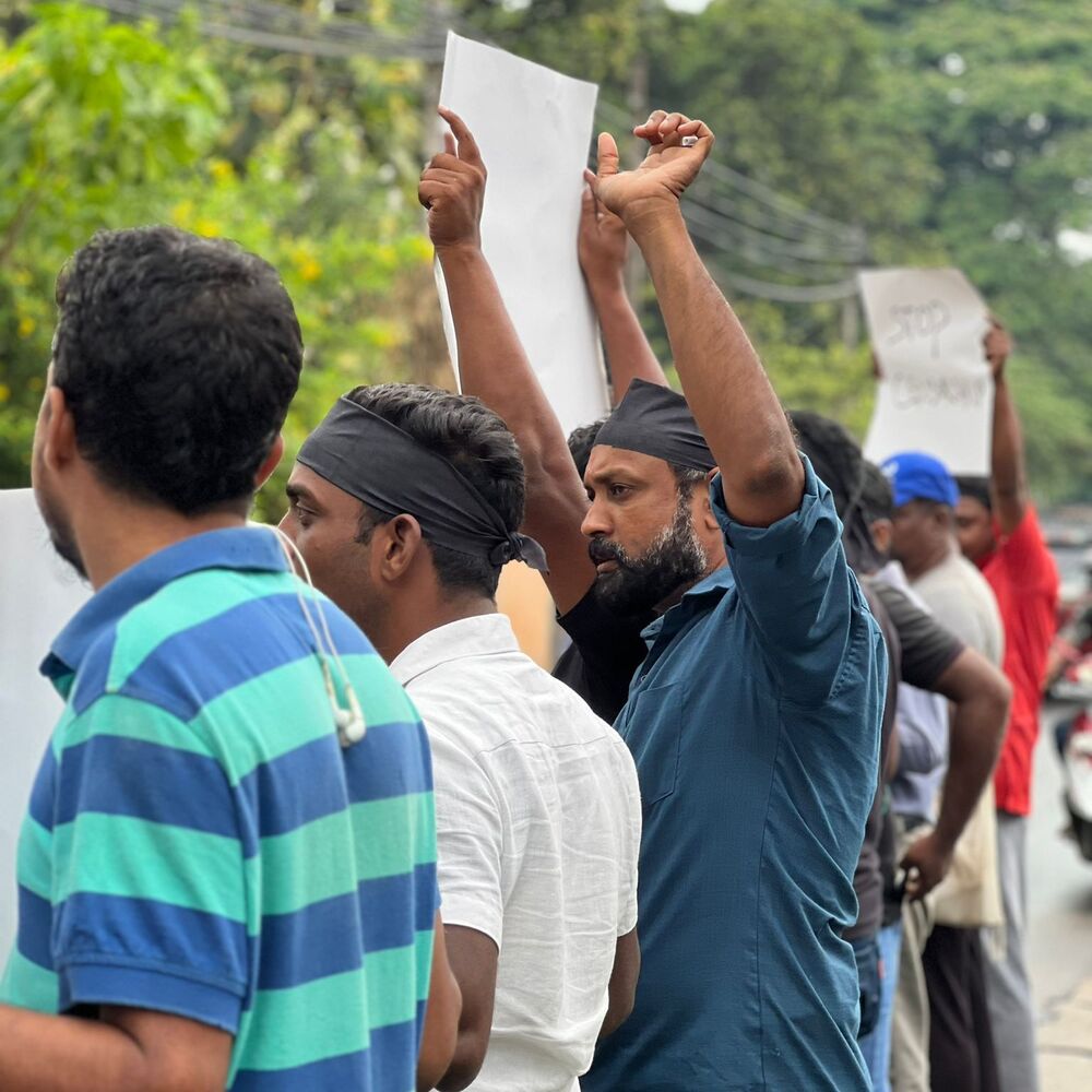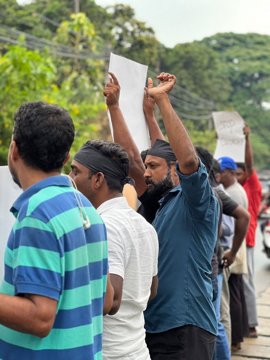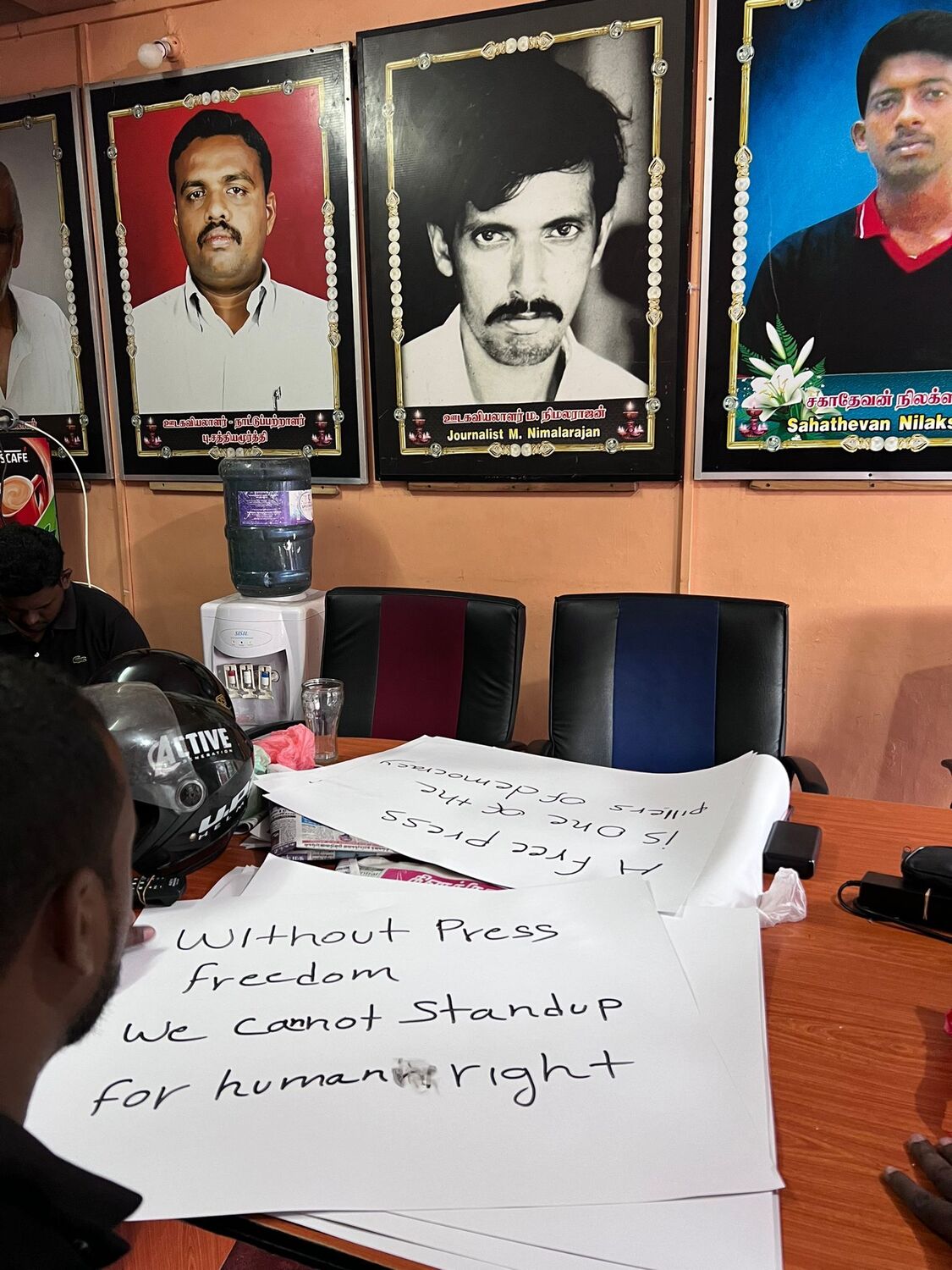 அதன் போது, ஊடக சுதந்திரத்தை வலியுறுத்தியும், படுகொலை செய்யப்பட்ட ஊடகவியலாளர்களுக்கு நீதி கோரியும், கொண்டுவரப்படவுள்ள பயங்கரவாத எதிர்ப்பு சட்டத்திற்கு எதிர்ப்பு தெரிவித்தும் ஊடகவியலாளர்களால் கோஷங்கள் எழுப்பட்டன.