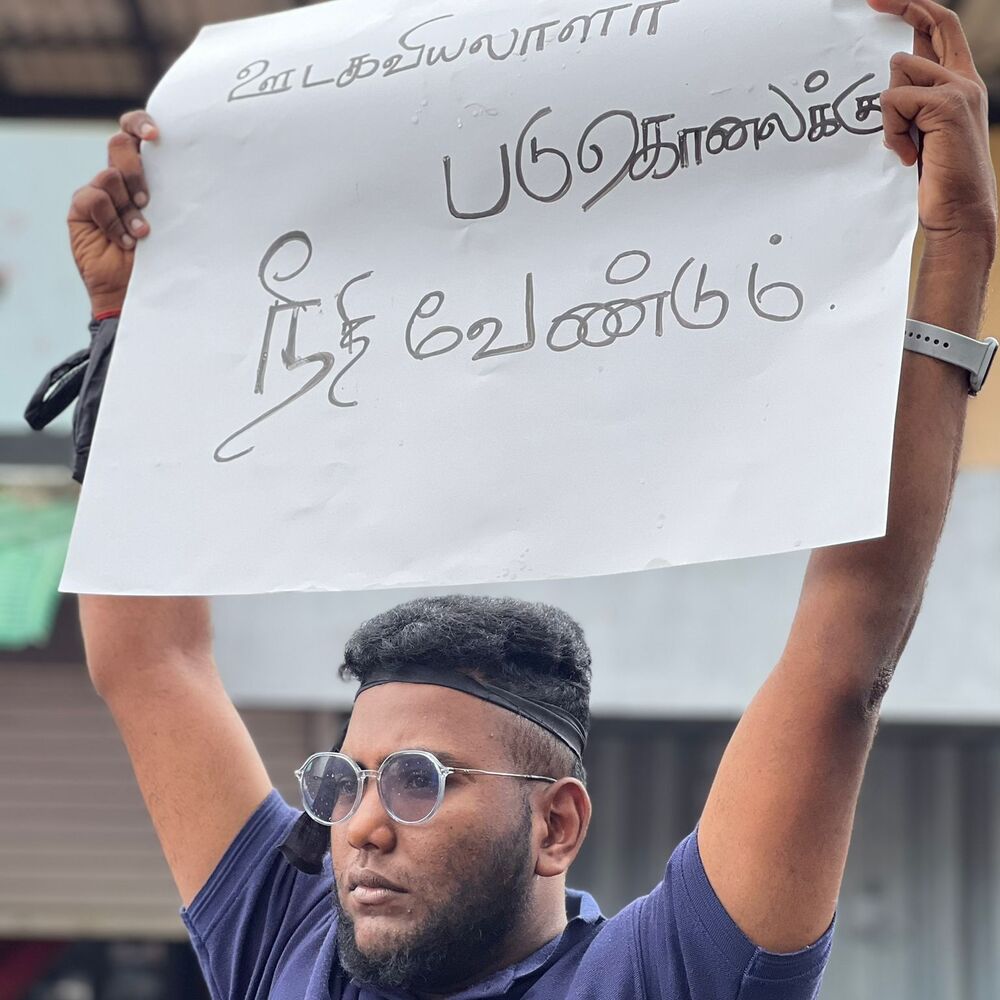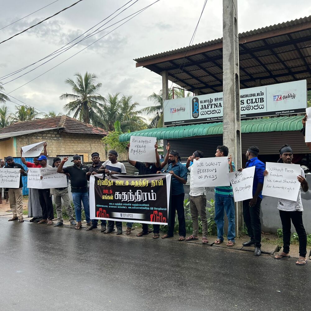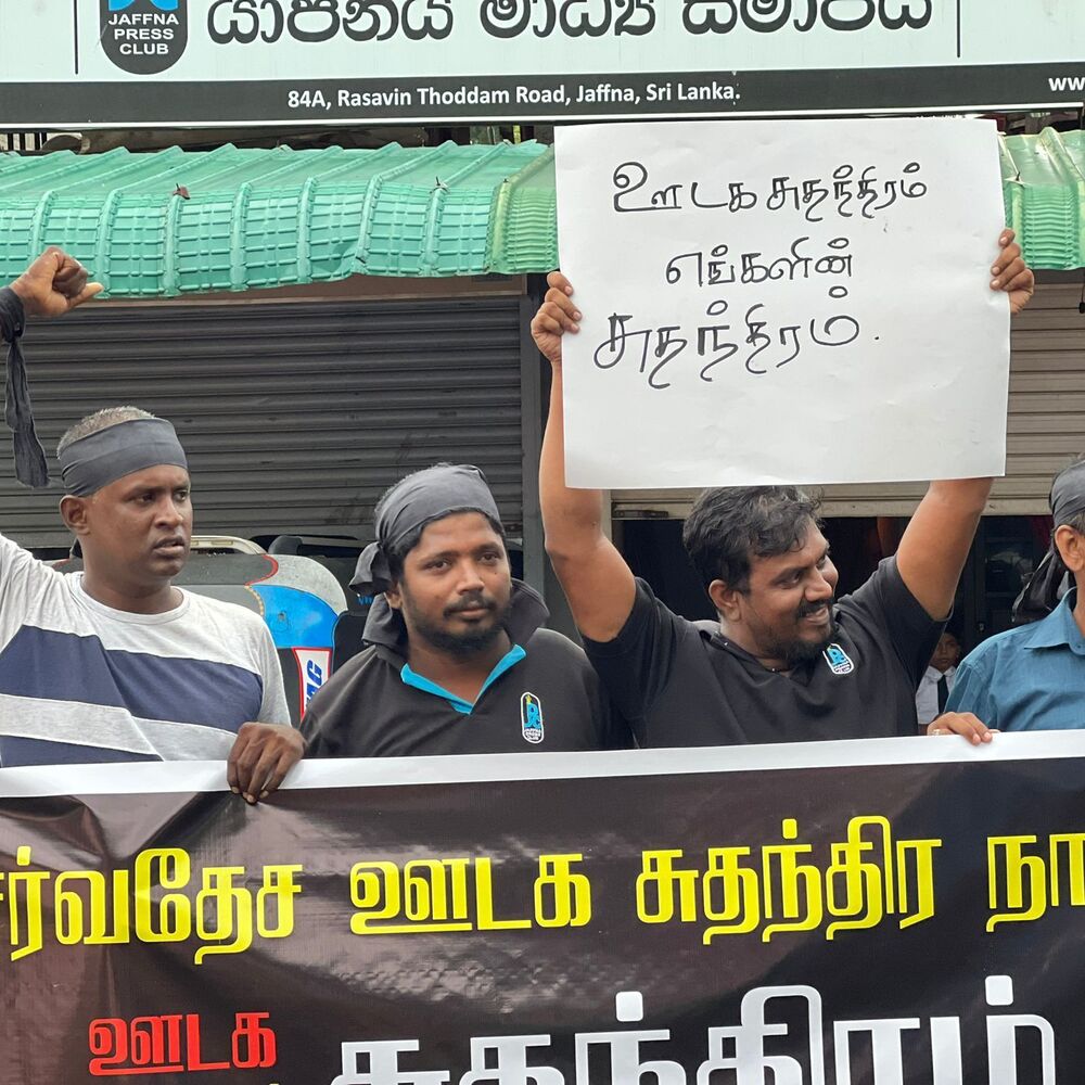 யாழ். ஊடக அமையத்தின் மதியம் குறித்த போராட்டம் முன்னெடுக்கப்பட்டது.