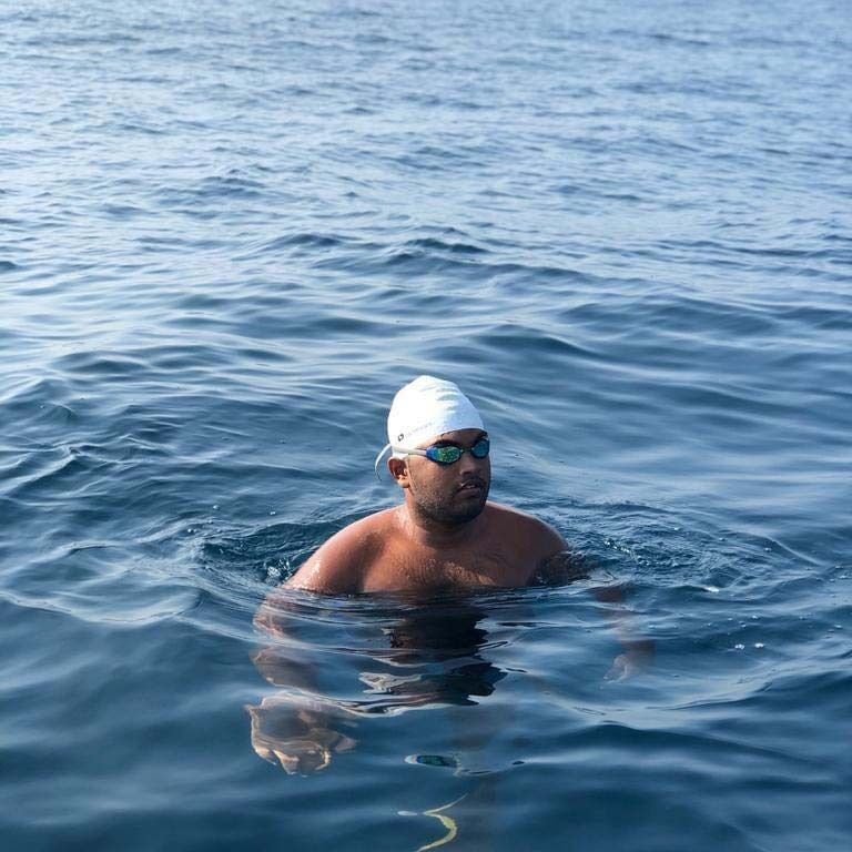 மதுஷிகன் தனது சாதனைக்கான முன்னாயத்தமாக கல்கிஸை கடற்கரையில் 20கிலோ மீற்றர் தூரம் வரை நீந்தியுள்ளார்.