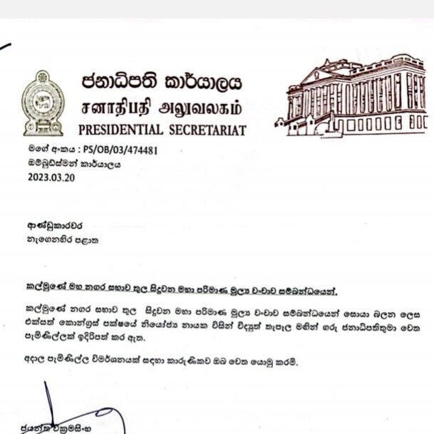 ஜனாதிபதி செயலகம் நடவடிக்கை