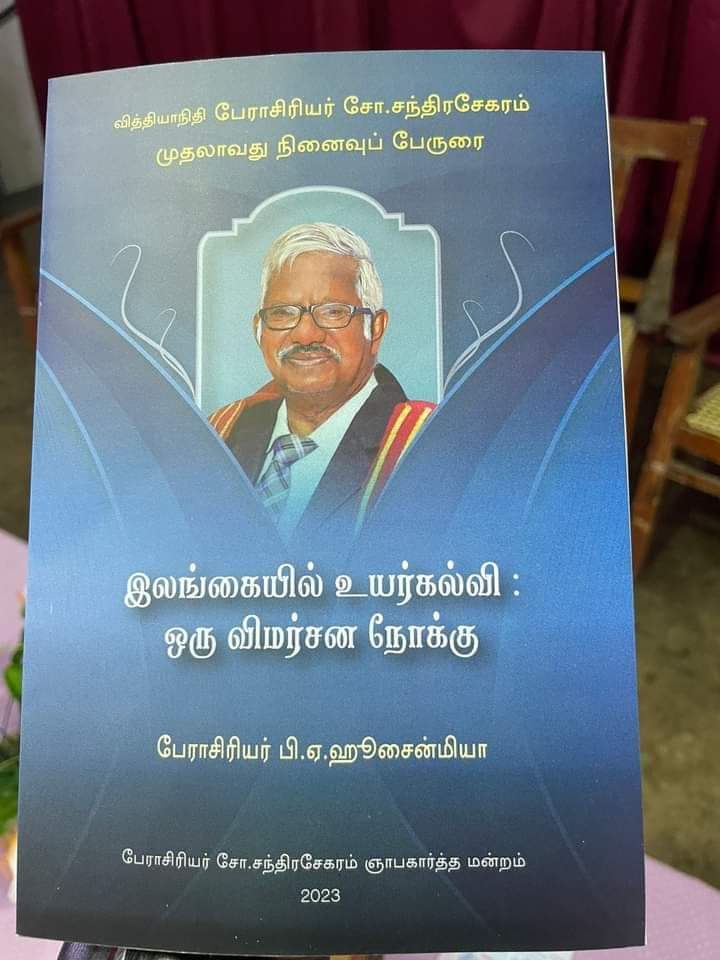மறைந்த பேராசிரியர் சோ. சந்திரசேகரம் ஞாபகர்த்த மன்றத்தின் ஏற்பாட்டிலும், கொழும்பு தமிழ்ச் சங்கத்தின் அனுசரணையுடனும், நினைவுப் பேருரை நிகழ்வு ஒன்று அண்மையில் கொழும்பில் இடம்பெற்றது.