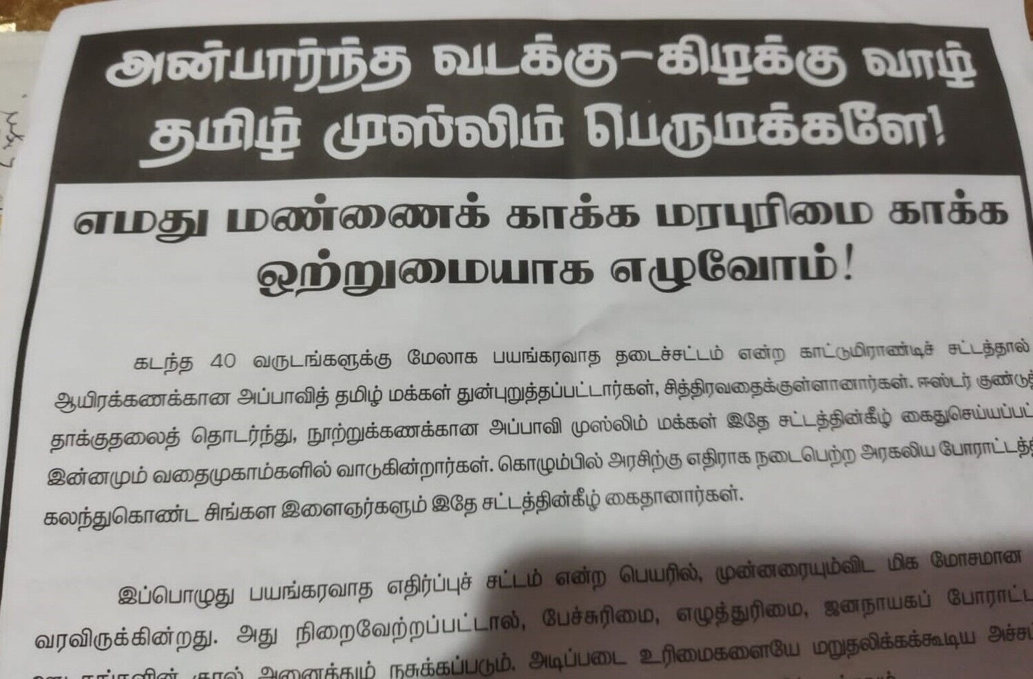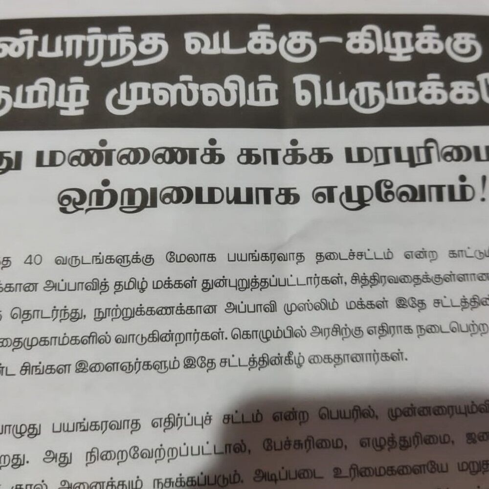 அன்பார்ந்த வடக்கு-கிழக்கு வாழ் தமிழ் முஸ்லிம் பெருமக்களே!