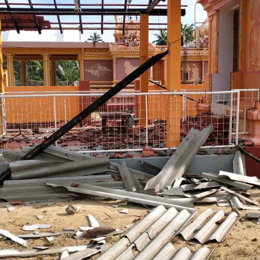 தென்மராட்சி வரணியில் நேற்று சனி வீசிய கடும் காற்றால் ஆலயம் ஒன்றும் வீடுகளும் சேதமடைந்தன.