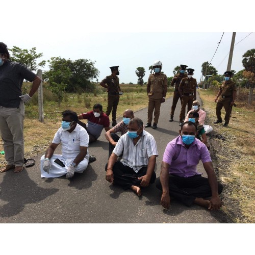 இதே வேளை போராட்ட இடத்தில் பருத்தித்துறை போலீஸ் நிலைய பொறுப்பதிகாரி தலமையில் போலீசார் ஆயதங்களுடனும் சிவில் உடையிலும் குவிக்கப்பட்டிருந்தனர்.