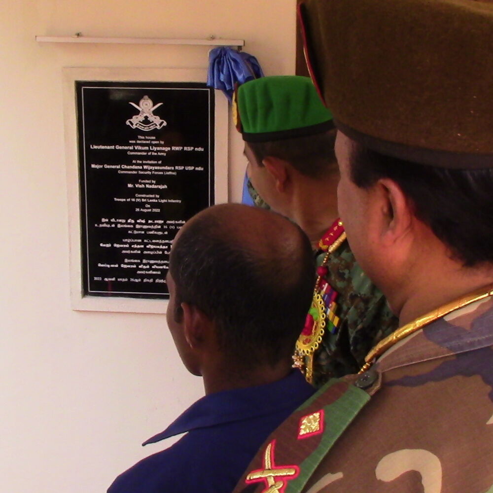 கொழும்பு ரோயல் கல்லூரியின் பழைய மாணவர் விஸ். நடராஜாவின் நிதிப் பங்களிப்பில் இலங்கை இராணுவத்தின் 551வது படைப்பிரிவின் ஆளணி உதவியில் கட்டி முடிக்கப்பட்ட வீடு நேற்றைய தினம் வெள்ளிக்கிழமை (26) இலங்கை இராணுவத் தளபதி ஜெனரல் விகும் லியனகேயினால் சம்பிரதாயபூர்வமாக கையளிக்கப்பட்டுள்ளது.
