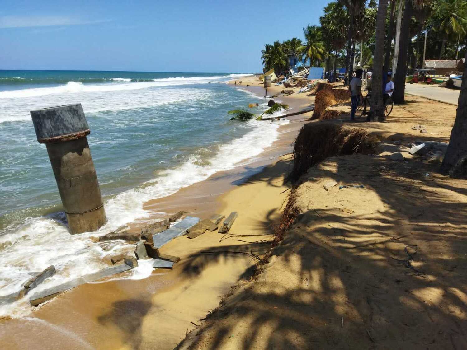 தற்சமயம் பெரும் வீரியத்துடன் ஏற்பட்டுள்ள கடலரிப்பினால் கடற்கரையை அண்டியிருந்த மீனவர் கட்டிடங்கள் சில சேதமுற்று கடலால் காவுகொள்ளப்பட்டு பெரும் பாதிப்பு ஏற்பட்டுள்ளதாகவும் அவர்கள் சுட்டிக்காட்டினர்.