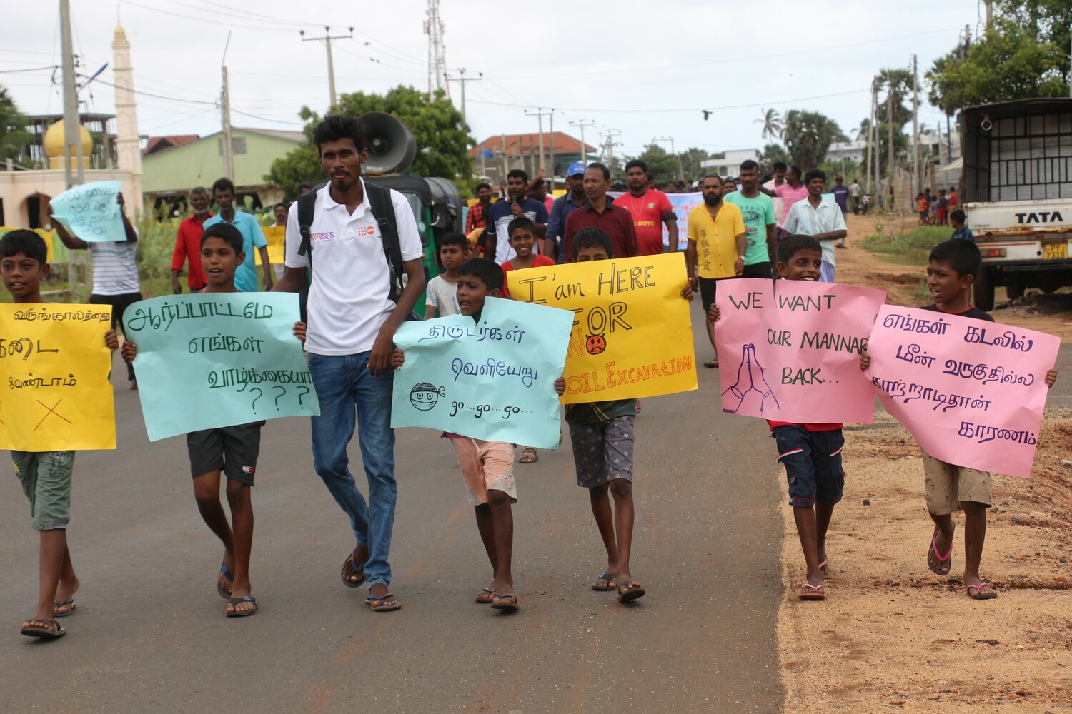 பல நூற்றுக்கணக்கான சிறுவர் தொடக்கம் பெரியோர் வரையிலான மக்கள் கலந்து கொண்ட இவ் போராட்டத்தில் மன்னார் பிரதேச சபை தவிசாளரிடம் மகஜர் கையளிக்கச் சென்றபோது தவிசாளர் இல்லாமையால் உப தவிசாளரிடம் சிறுவன் ஒருவரால் மகஜர் கையளிக்கப்பட்டது.