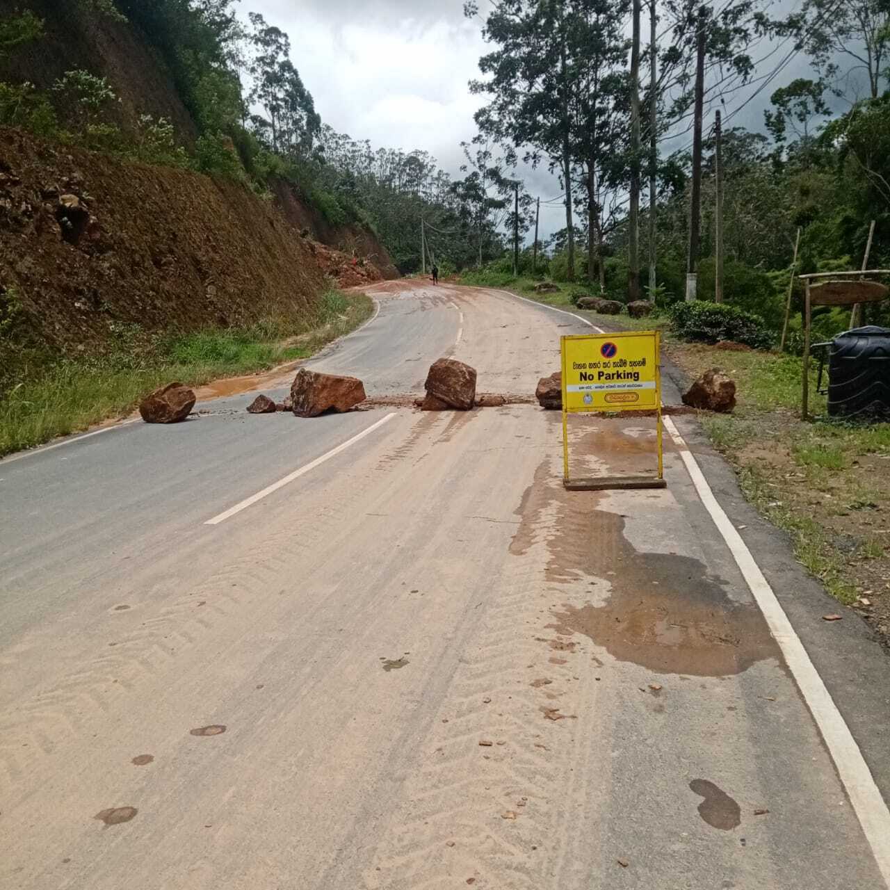 -சரிந்து விழும் அபாயத்திலுள்ள மண் திட்டுப் பகுதியில் பாரிய வெட்டுக்கள் ஏற்பட்டு உள்ளதால் அந்த வீதியை உடன் அமுலாகும் வரையில் போக்குவரத்துக்கு தடை செய்யப்பட்டுள்ளது.