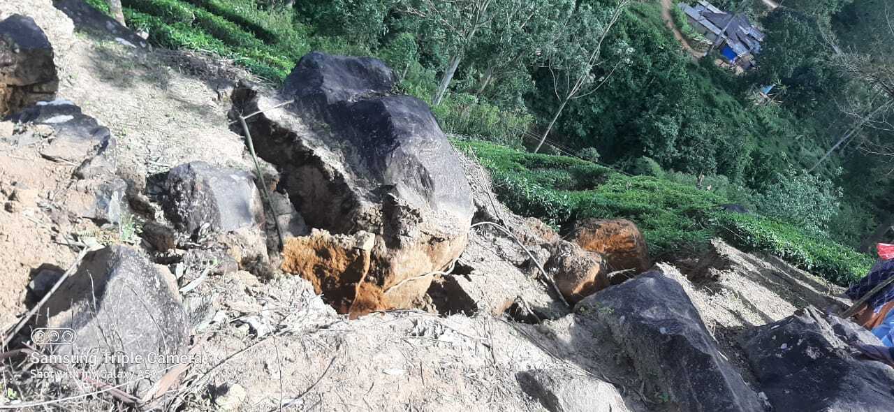 மலையகப் பகுதியில் கடந்த சில தினங்களாக பெய்து வந்த மழையின் காரணமாக மஸ்கெலியா நல்லதண்ணி பிரதான வீதியில் மோகினி எல்ல பகுதிகளில் உள்ள லக்சபான தோட்ட வாழமலை பிரிவிற்கு உரித்தான நல்லதண்ணி பிரதான வீதியில் சுமார் 200 மீட்டர் தேயிலை செடிகளில் உள்ள பாரிய மண் திட்டுகள் சரிந்து விழும் அபாயம் ஏற்பட்டு இருக்கின்றது. இதனால் இப்பகுதி வீதியும் போக்குவரத்துக்கு தடை விதிக்கப்பட்டுள்ளது.