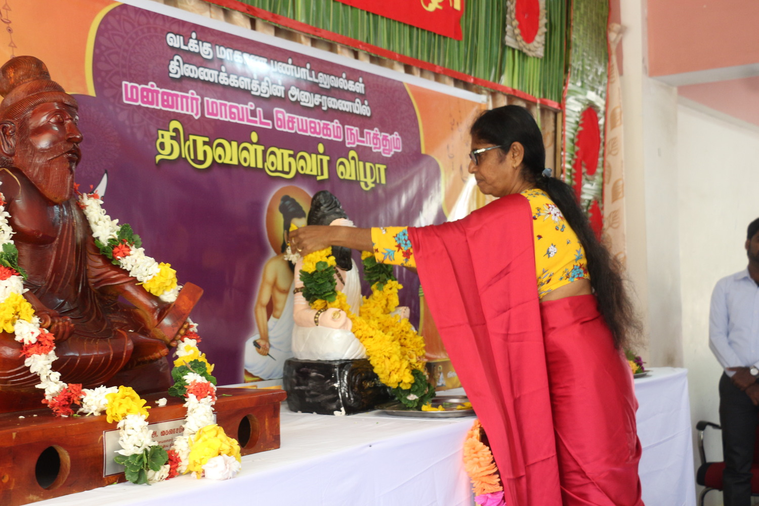 திருவள்ளுவர் விழாவின் ஆரம்ப நிகழ்வாக திருவள்ளுவர் சிலைக்கு பிரதம விருந்தினராக கலந்து கொண்ட வவுனியா பல்கலைக்கழகத்தின் துணைவேந்தர் கலாநிதி த.மங்களேஸ்வரன் அவர்களால் மலர் மாலை அணிவிக்கப்பட்டு மாவட்டச் செயலக பிரதான வீதியூடாக திருவள்ளுவர் சிலை ஊர்வலமாக இந் நிகழ்வு இடம்பெற்ற மன்னார் மாவட்ட செயலக பிராத்தனை மண்டபத்துக்கு எடுத்து வரப்பட்டது.