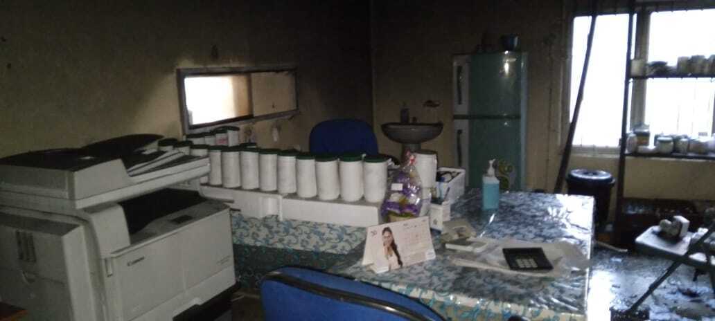 இதன் போது, மருந்தகத்தில் வைக்கப்பட்டிருந்த மருந்துகள் உட்பட பொருட்கள், தளபாடங்களிற்கு சேதம் ஏற்பட்டுள்ளதாக சுகாதார துறையினர் தெரிவித்துள்ளனர்.