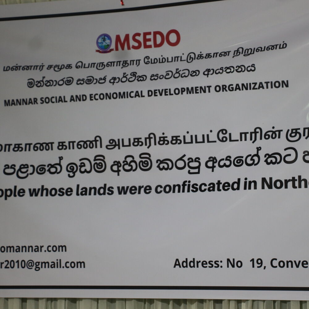 ஆகவே முதலில் நீங்கள் உங்களுக்கு தரப்பட்டு படிவங்களை சரியான முறையில் பூர்த்தி செய்து வழங்கும் பட்சத்தில் உங்கள் மாவட்டங்களில் உள்ள குழுக்களூடாக உங்கள் பகுதியிலுள்ள எங்கள் சக நிறுவனத்துக் கூடாகவும் சட்டத்தரணிகளின் ஆலோசனைகள் பெற்று நாம் உங்கள் காணிப் பிரச்சனைகள் தொடர்பாக நடவடிக்கைகளை முன்னெடுக்க முடியும் என தெரிவித்தார்.
