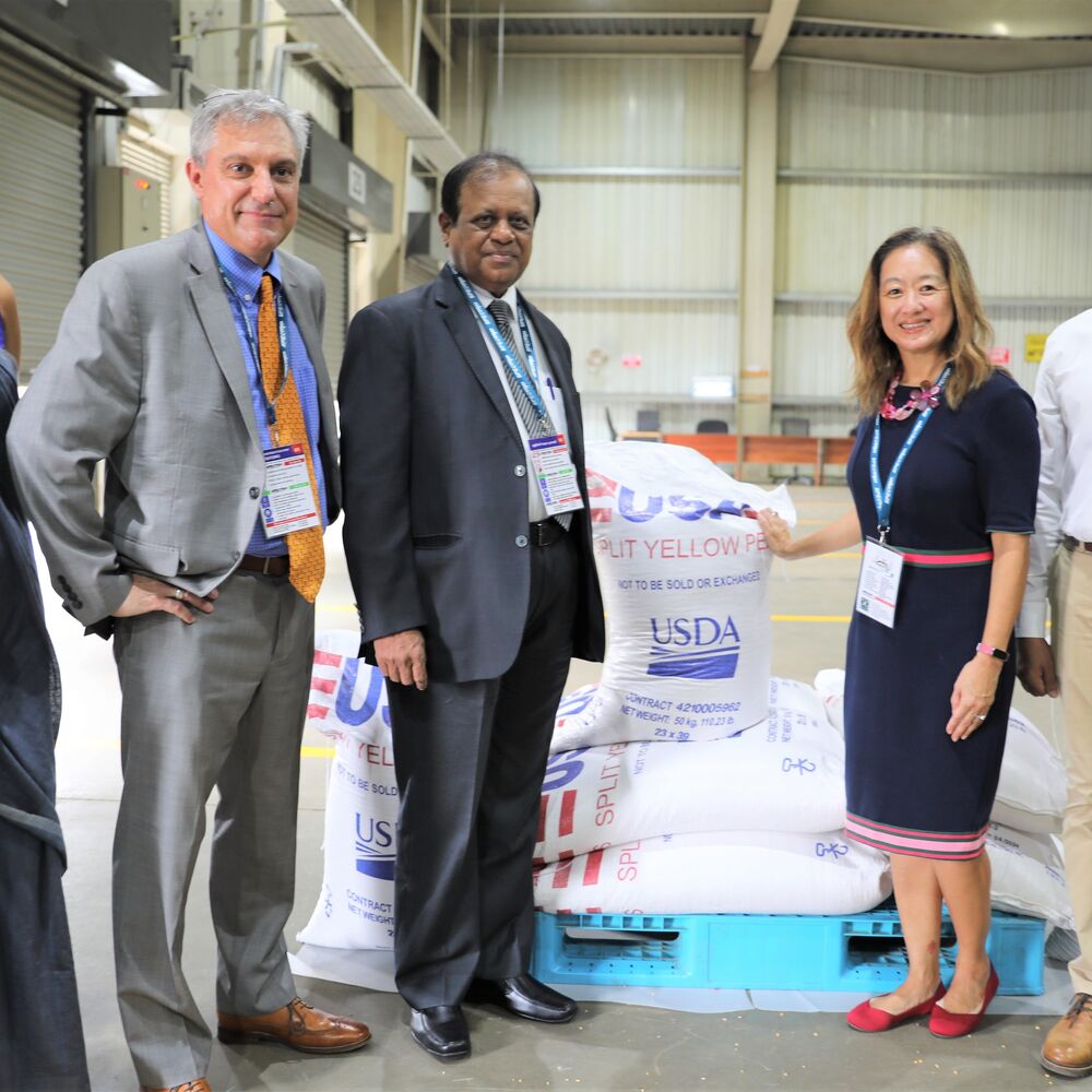 Colombo, 26, August 2022: Today, the United States, through the U.S. Department of Agriculture (USDA) and in partnership with Save the Children, received 320 metric tons of split yellow peas to nourish school children across Sri Lanka. The donation is part of a larger one of 3,000 metric tons of food. U.S. Ambassador Julie Chung, the Hon. Dr Susil Premajayantha, Minister of Education, and representatives from the Ministry of Health, the National Planning Department, and Save the Children attended the hand-over ceremony.