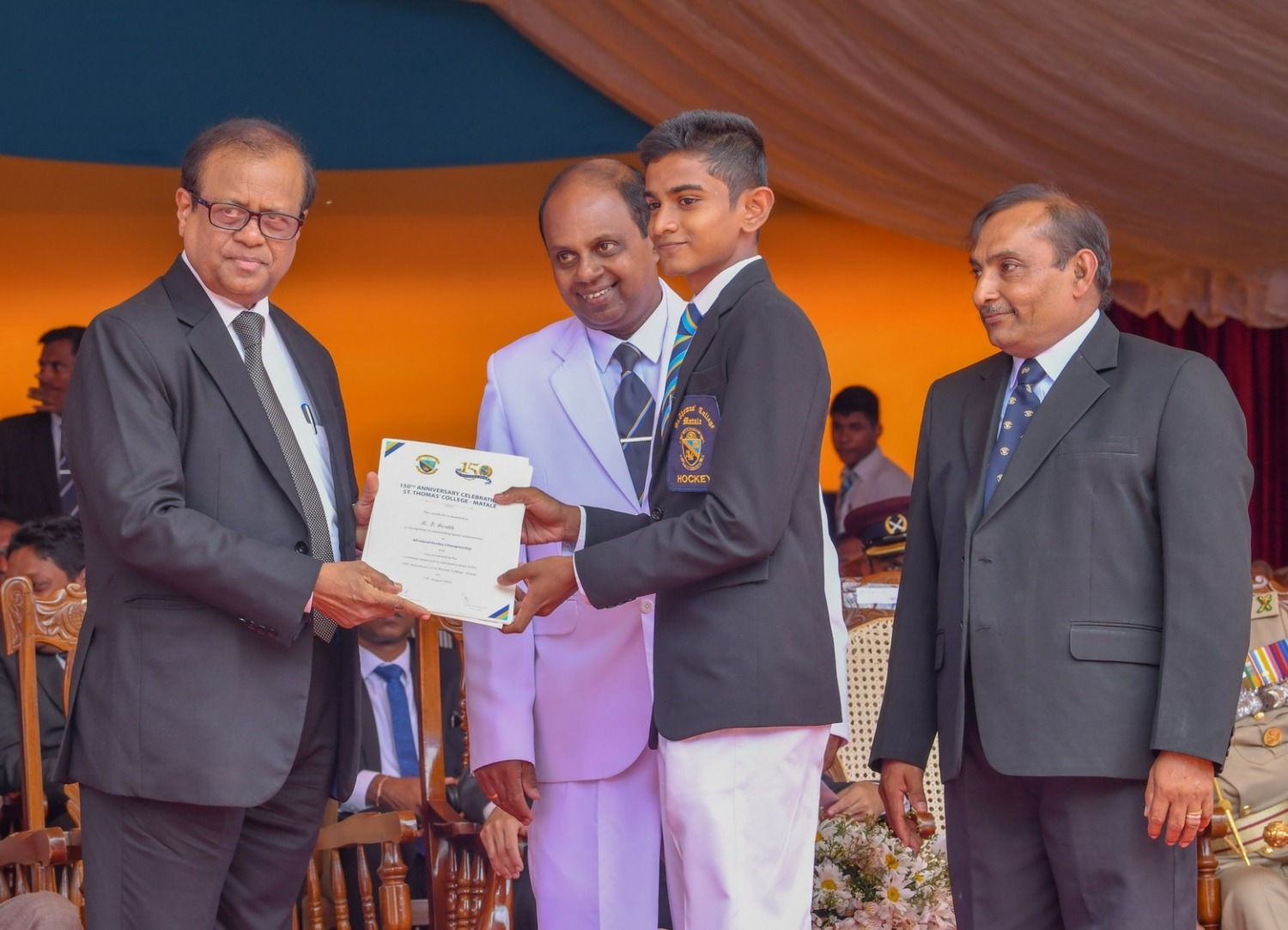 கல்வி அமைச்சர் கலாநிதி சுசில் பிரேமஜயந்த, பிரதமரின் செயலாளர் அனுர திஸாநாயக்க, மத்திய மாகாண ஆளுநர் லலித். யு. கமகே, கல்வி அமைச்சின் செயலாளர் நிஹால் ரணசிங்க, மனித உரிமைகள் ஆணைக்குழுவின் தலைவர் முன்னாள் நீதிபதி எம்.பி.பி. தெஹிதெனிய, முப்படைப் பதவிநிலைத் தலைமை அதிகாரி ஜெனரல் சவேந்திர சில்வா, இலங்கை சட்டத்தரணிகள் சங்கத்தின் தலைவர் சட்டத்தரணி கௌசல்ய நவரத்ன, NSBM பசுமைப் பல்கலைக்கழக உபவேந்தர் பேராசிரியர் சமிந்த ரத்நாயக்க, மாத்தளை புனித தோமஸ் கல்லூரி அதிபர் தம்மிக்க ஹேவாவசம் மற்றும் ஆசிரியர்கள், மாணவர்கள், பெற்றோர்கள், முன்னாள் மாணவர்கள் உட்பட பலர் இந்நிகழ்வில் கலந்து கொண்டனர்.