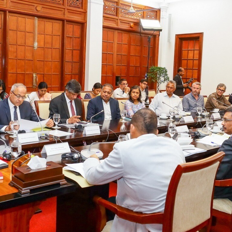 தேசிய பாதுகாப்பு தொடர்பான ஜனாதிபதியின் சிரேஷ்ட ஆலோசகரும் ஜனாதிபதியின் பணிக்குழாம் பிரதானியுமான சாகல ரத்நாயக்க, ஜனாதிபதியின் செயலாளர் சமன் ஏக்கநாயக்க, சுற்றுலா மற்றும் காணி அமைச்சின் செயலாளர் எச்.எம்.டீ.பீ. ஹேரத் ஆகியோருடன், சுற்றுலாத்துறையுடன் தொடர்புடைய அமைச்சுக்களின் பிரதானிகள், இலங்கையை சுற்றுலாப் பயணத்தின் பயணத்தின் இறுதி எல்லையாக மாற்றியமைப் பதற்கான பரிந்துரைகளை வழங்குவதற்காக நியமிக்கப்பட்ட குழுவின் தலைவர் காவன் ரத்னாயக்க உள்ளிட்ட அதன் உறுப்பினர்கள் மற்றும் அதிகாரிகள் இந்த சந்திப்பில் கலந்து கொண்டனர்.