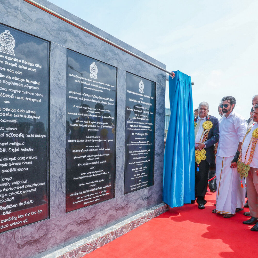 ஆசிய அபிவிருத்தி வங்கியின் 266 மில்லியன் ரூபா திட்டத்தில் தாளையடியில் அமைக்கப்பட்ட கடல் நீரை நன்னீராக்கும் திட்டத்தை ஜனாதிபதி ரணில் விக்கிரமசிங்க இன்று (02) வெள்ளி திறந்து வைத்தார்.