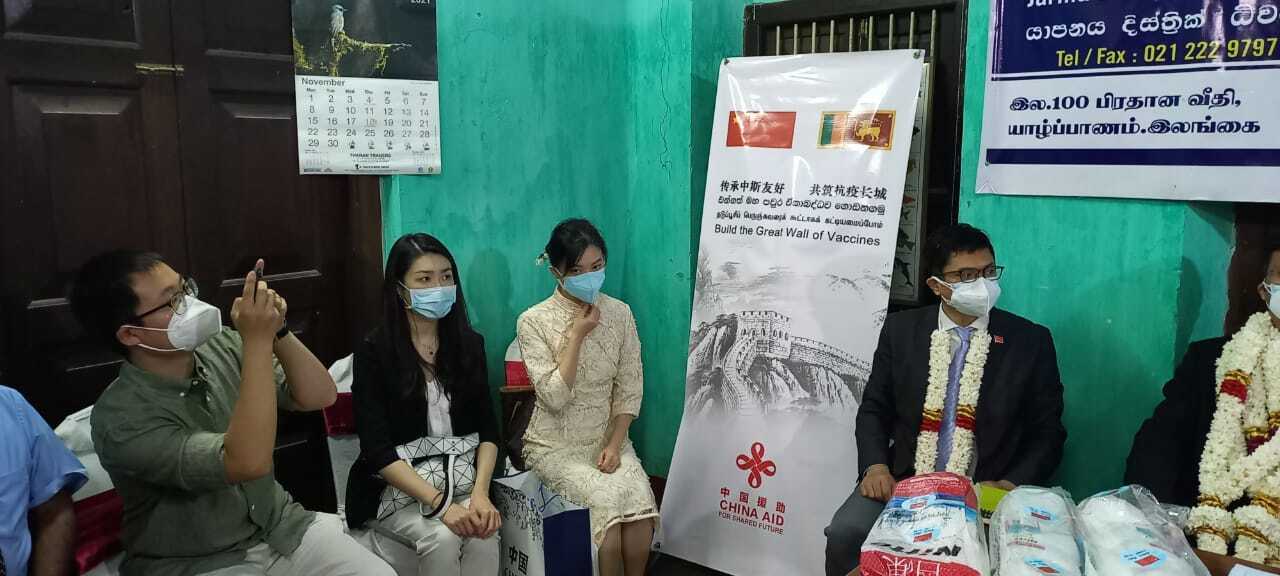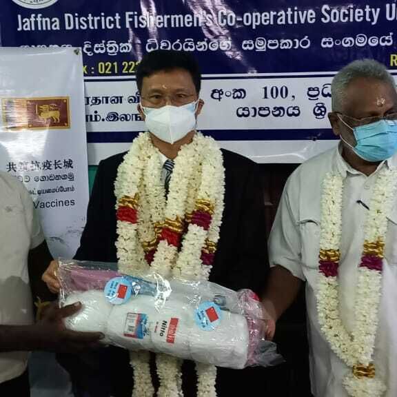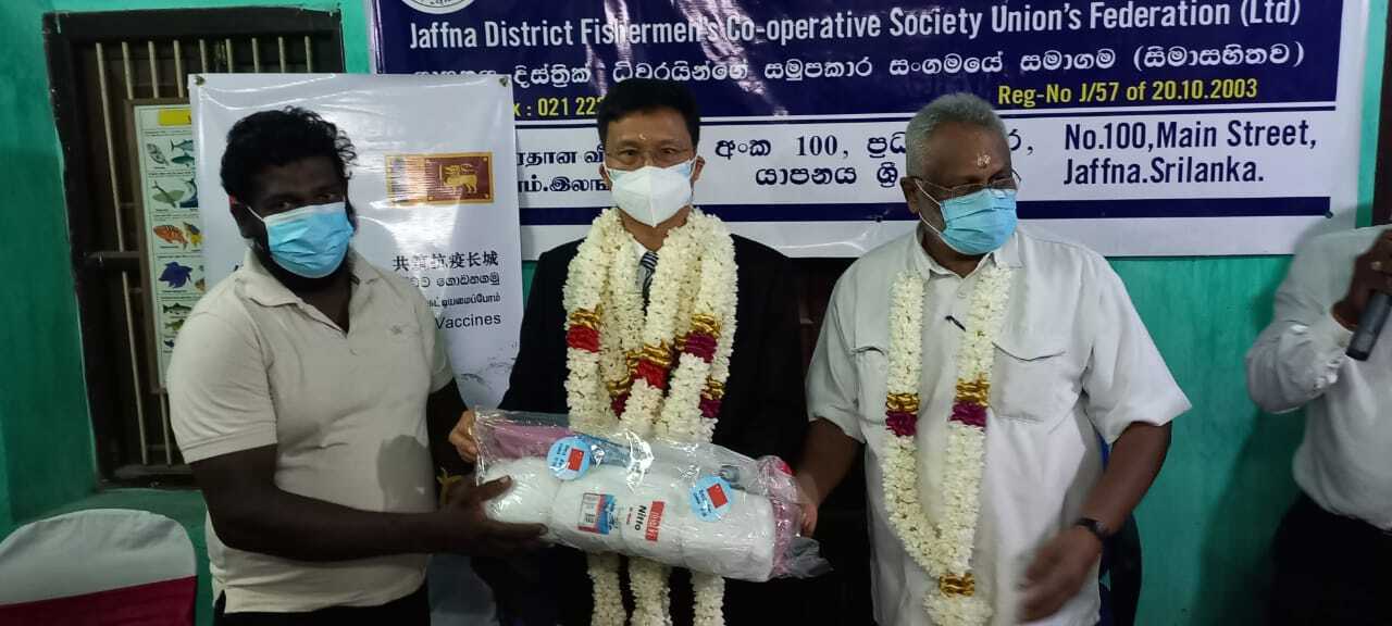 வடக்கு மாகாணத்துக்கான விஜயத்தை மேற்கொண்ட இலங்கைக்கான சீனத் தூதுவர் கீ சென் ஹொங், யாழ்.மாவட்ட கடற்றொழிலாளர் கூட்டுறவுச் சங்க சமாசங்களின் சம்மேளனத்தின் ஊடாக யாழ்.மாவட்ட கடற்றொழிலாளர்களுக்கு சுமார் 13.75 மில்லியன் ரூபா பெறுமதியான உணவுப் பொதிகளையும், 6 மில்லியன் ரூபா பெறுமதியான வலைகளையும் வழங்கினார்.