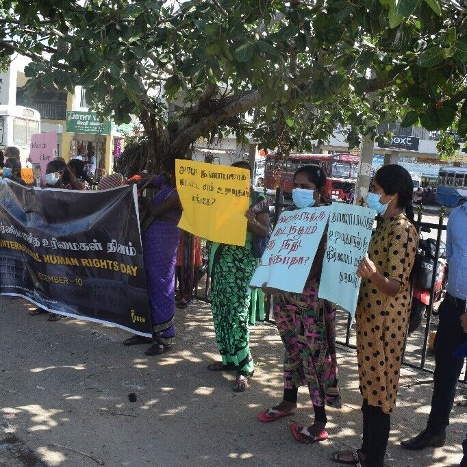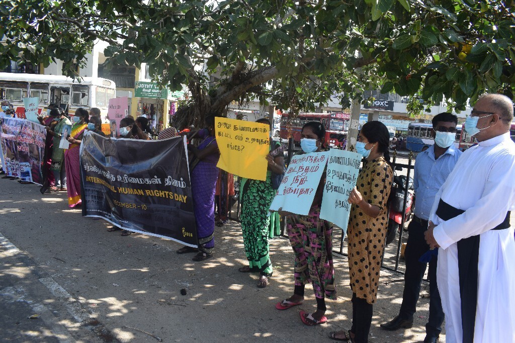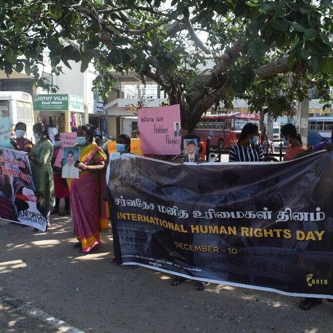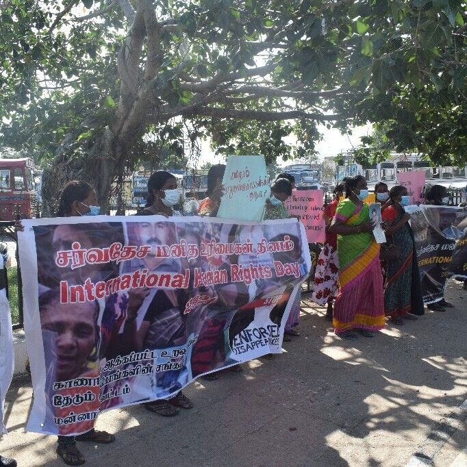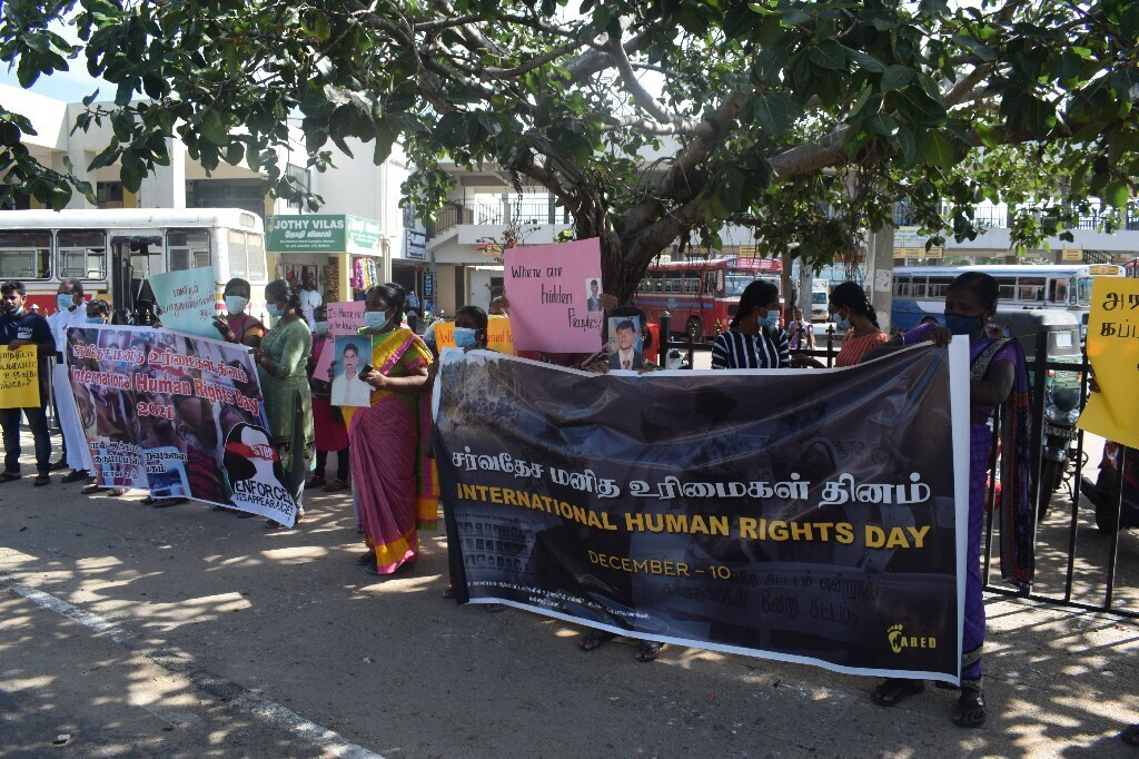 சர்வதேச மனித உரிமைகள் தினத்தை முன்னிட்டு மன்னாரில் காணாமல் ஆக்கப்பட்ட உறவினர்களைத் தேடும் குடும்பங்களின் சங்கம் மற்றும் பாதிக்கப்பட்ட குடும்பங்களுக்கான இணையம் ஆகியன இணைந்து மன்னாரில் காணாமல் ஆக்கப்பட்டவர்களின் நிலை என்ன என்பதை வலியுறுத்தியும் மற்றும் சர்வதேச மனித உரிமைகள் தினத்தை நினைவு கூர்ந்தும் மன்னார் நகரில் கவனயீர்ப்பு போரட்டம் இன்று காலை 10 மணி தொடக்கம் ஒரு மணி நேரம் வரை நடாத்தப்பட்டது.