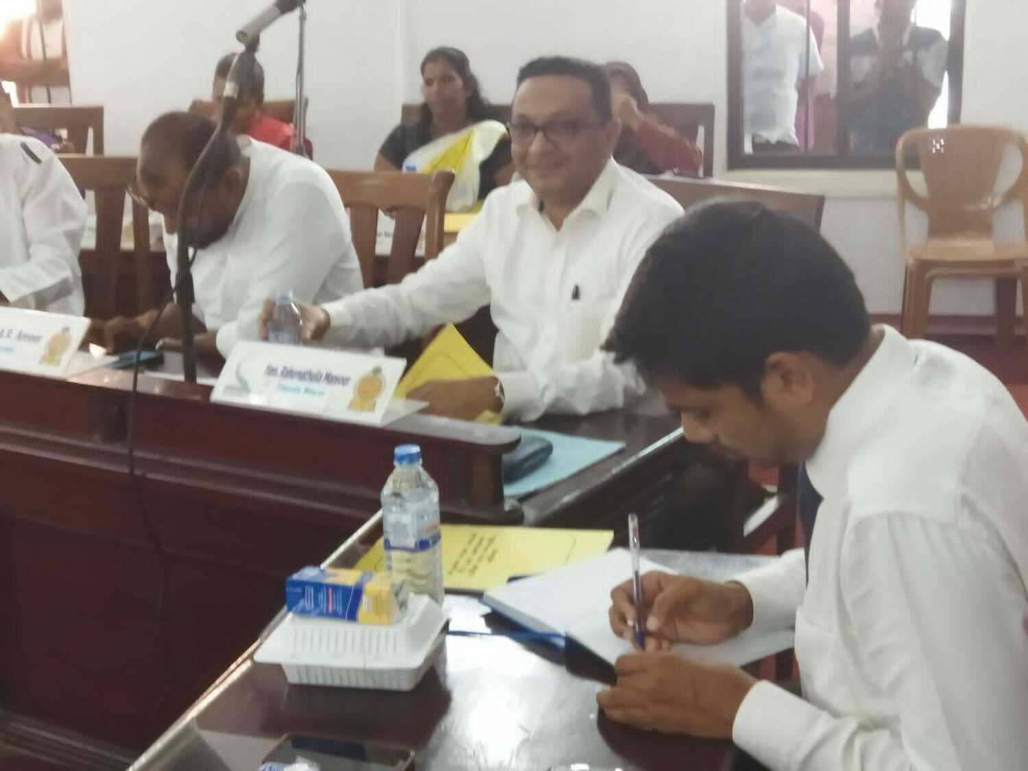 ஆளும் ஸ்ரீலங்கா முஸ்லிம் காங்கிரஸ் உள்ளிட்ட ஐக்கிய தேசியக் கட்சியின் 12 உறுப்பினர்களுடன் அகில இலங்கை மக்கள் காங்கிரஸின் 05 உறுப்பினர்கள், சாய்ந்தமருது சுயேட்சைக் குழுவின் 04 உறுப்பினர்கள், தேசிய காங்கிரஸின் ஒரு உறுப்பினரும் ஹெலிகொப்டர் சுயேட்சைக் குழுவின் ஒரு உறுப்பினர் மற்றும் மான் சுயேட்சைக்குழு உறுப்பினர் ஒருவருமாக 26 உறுப்பினர்கள் ஆதரவாக வாக்களித்தனர்.