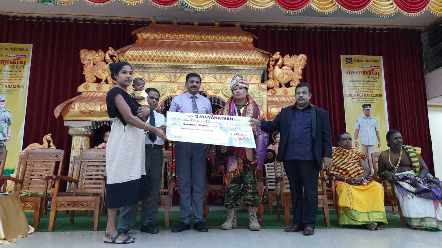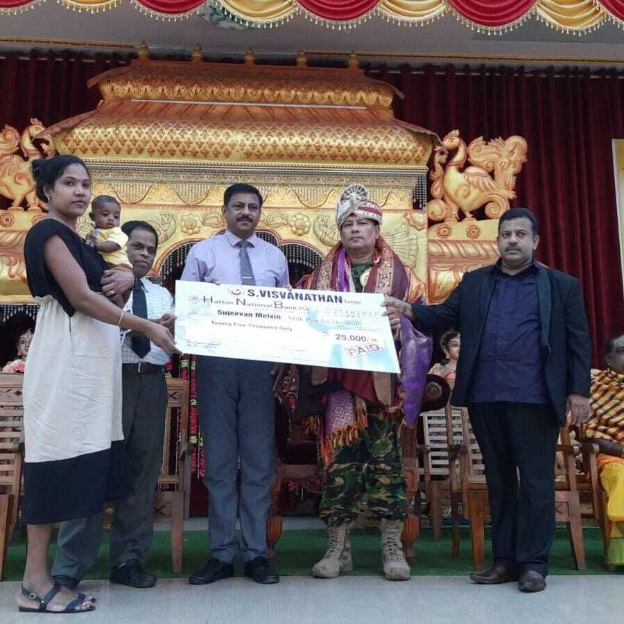 என் நிகழ்வில் குளோபல் அசோசியேசன் ஐரோப்பாவுக்கான தலைமை ஒருங்கிணைப்பாளர் விஸ்வநாதனின் அன்பளிப்பில் பாலூட்டும் தாய்மார்களுக்கான தலா 25,000 ரூபாய் காசோலைகள் இரண்டும், வறுமை கோட்டுக்கு உட்பட்ட குடும்பத்தில் திருமண பந்தத்தில் இணைந்த தம்பதியினர் ஒருவருக்கு 50 ஆயிரம் ரூபாய் காசோலை அன்பளிப்பாக வழங்கப்பட்டது.