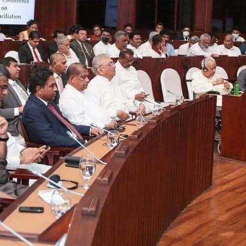 தேசிய நல்லிணக்கம் மூலம் இனப்பிரச்சினக்கு தீர்வு காண்பது தொடர்பில் சர்வகட்சி மாநாட்டிற்கு அழைப்பு விடுத்தமைக்காக ஆளும் கட்சி, எதிர்க்கட்சி உறுப்பினர்கள் ஜனாதிபதி ரணில் விக்ரமசிங்க அவர்களுக்கு தமது பாராட்டுகளை தெரிவித்தனர்.