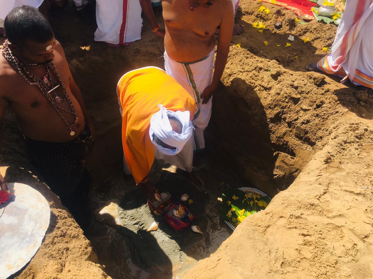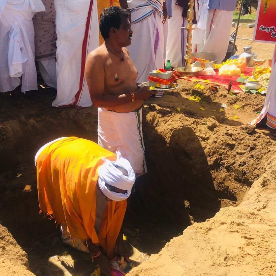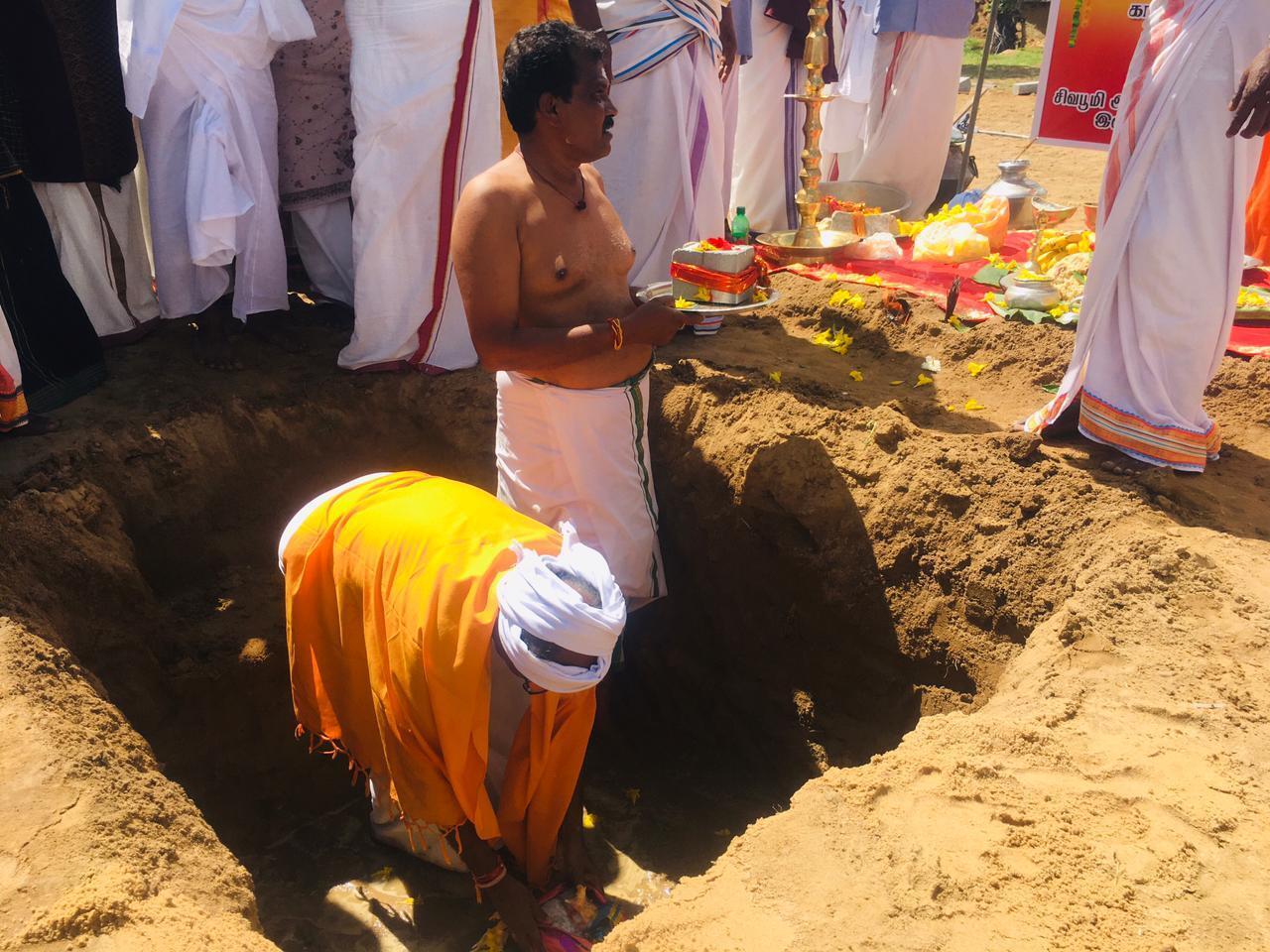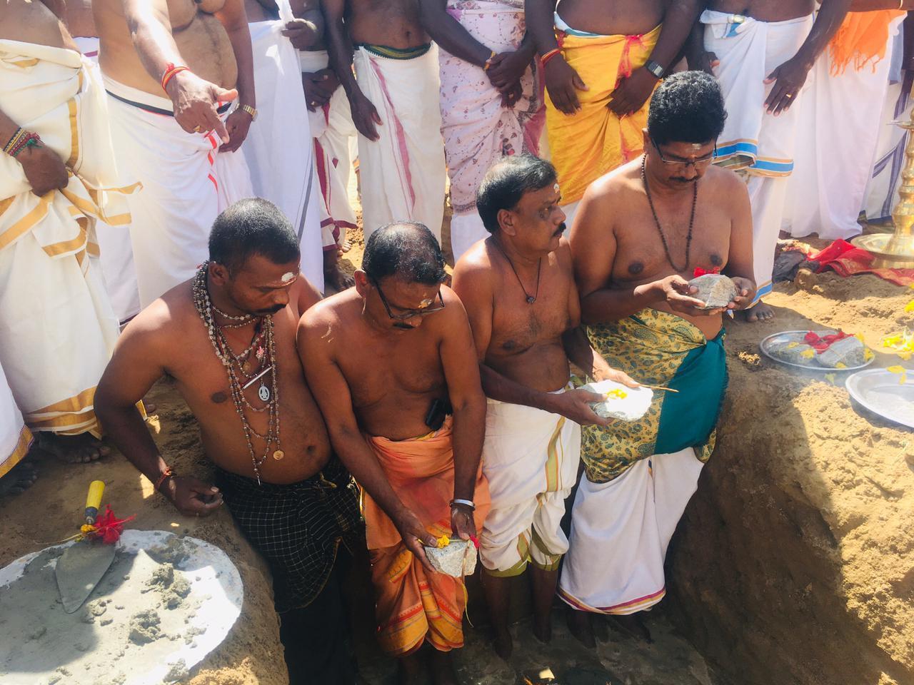 அடிகல்லினை, சிவ பூமி அறக்கட்டளை தலைவர் கலாநிதி செஞ்சொற்செல்வர் ஆறு திருமுருகன், யாழ்ப்பாணமிருந்து வருகை தந்திருந்த அமெரிக்காவின் ஹவாய் தீவினுடைய ஆன்மீக சுடர் ரிஷி தொண்டனாதர் சுவாமி, கொக்கட்டிச்சோலை ஸ்ரீ தான்தோன்றீஸ்வரர் ஆலய வண்ணக்குமார் மற்றும் குடிகளின் அங்கத்தவர்கள், நிருவாக உறுப்பினர்கள் என பலரும் கலந்து நட்டு வைத்தனர்.