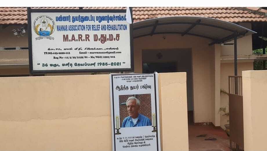 இவரின் மறைவையொட்டி மன்னார் மாவட்ட துயர் துடைப்புச் மறுவாழ்வுச் சங்க அலுவலக மண்டபத்தில் இச் சங்கத்தின் தலைவாரும் எழுத்தூர் பங்கு தந்தையுமான அருட்பணி ரி. நவரட்ணம் அடிகளார் தலைமையில் செவ்வாய் கிழமை (27.12.2022) இரங்கல் கூட்டம் இடம்பெற்றது.